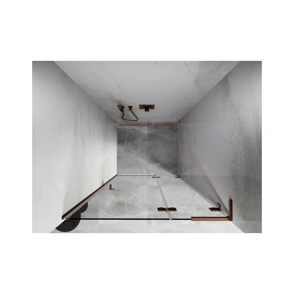 Mexen Lunar L, výklopné pravé sprchové dveře 100 cm, 8mm čiré sklo, růžové zlato profil, 834L-100-000-60-00-P