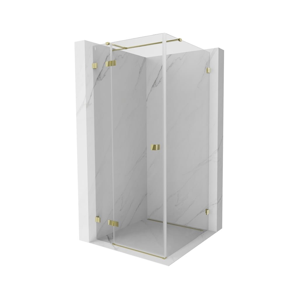 Mexen Lunar T, sklápěcí sprchový kout levý 120 x 120 cm, 8mm čiré sklo, zlatý profil, 834T-120-120-50-00-L