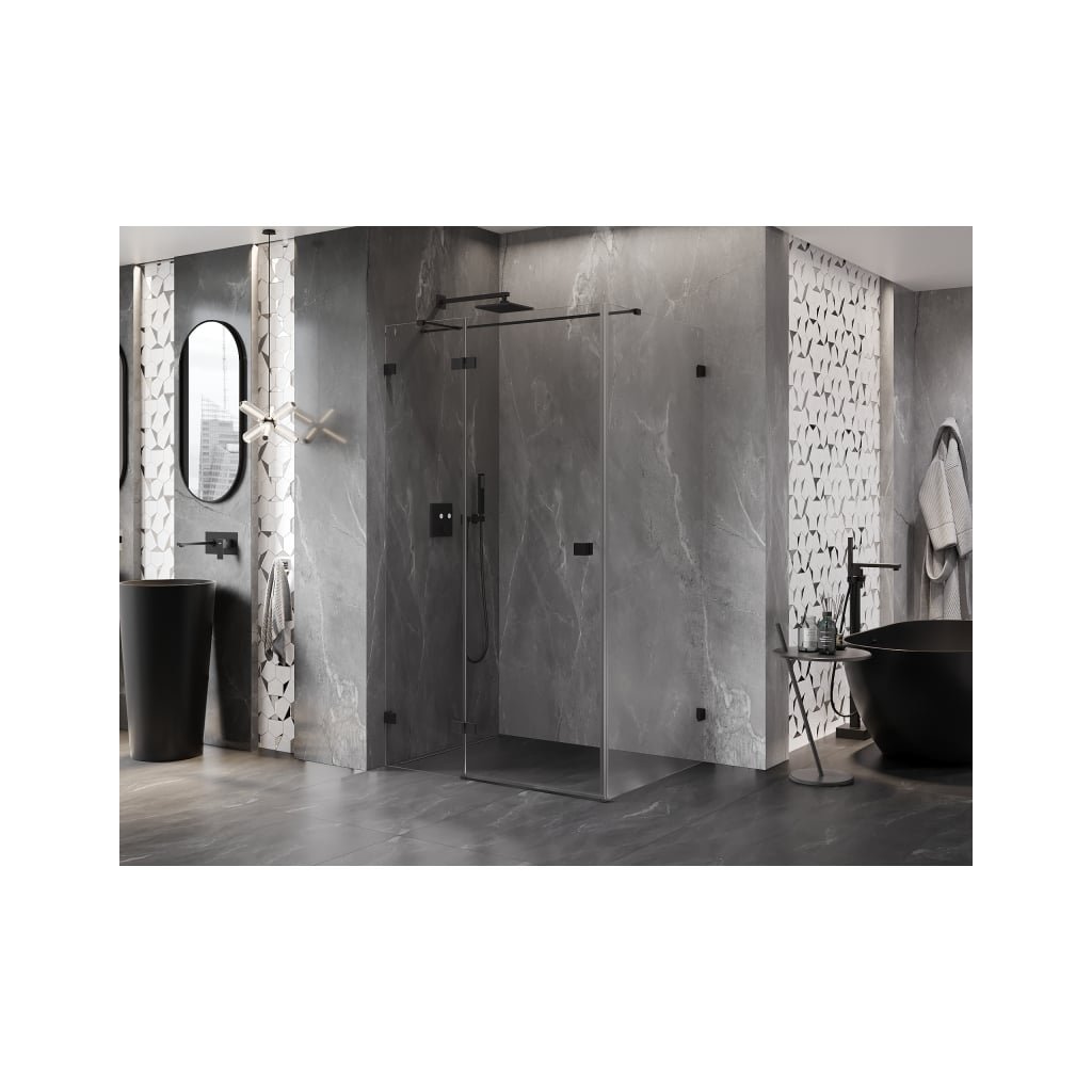 Mexen Lunar T, sklápěcí sprchový kout levý 135 x 90 cm, 8mm čiré sklo, černý profil, 834T-135-090-70-00-L