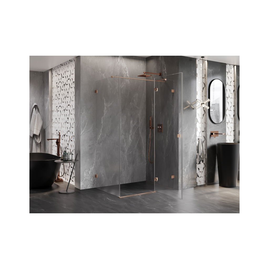 Mexen Lunar T, sklopný sprchový kout pravý 135 x 110 cm, 8mm čiré sklo, profil měděná matná, 834T-135-110-65-00-P