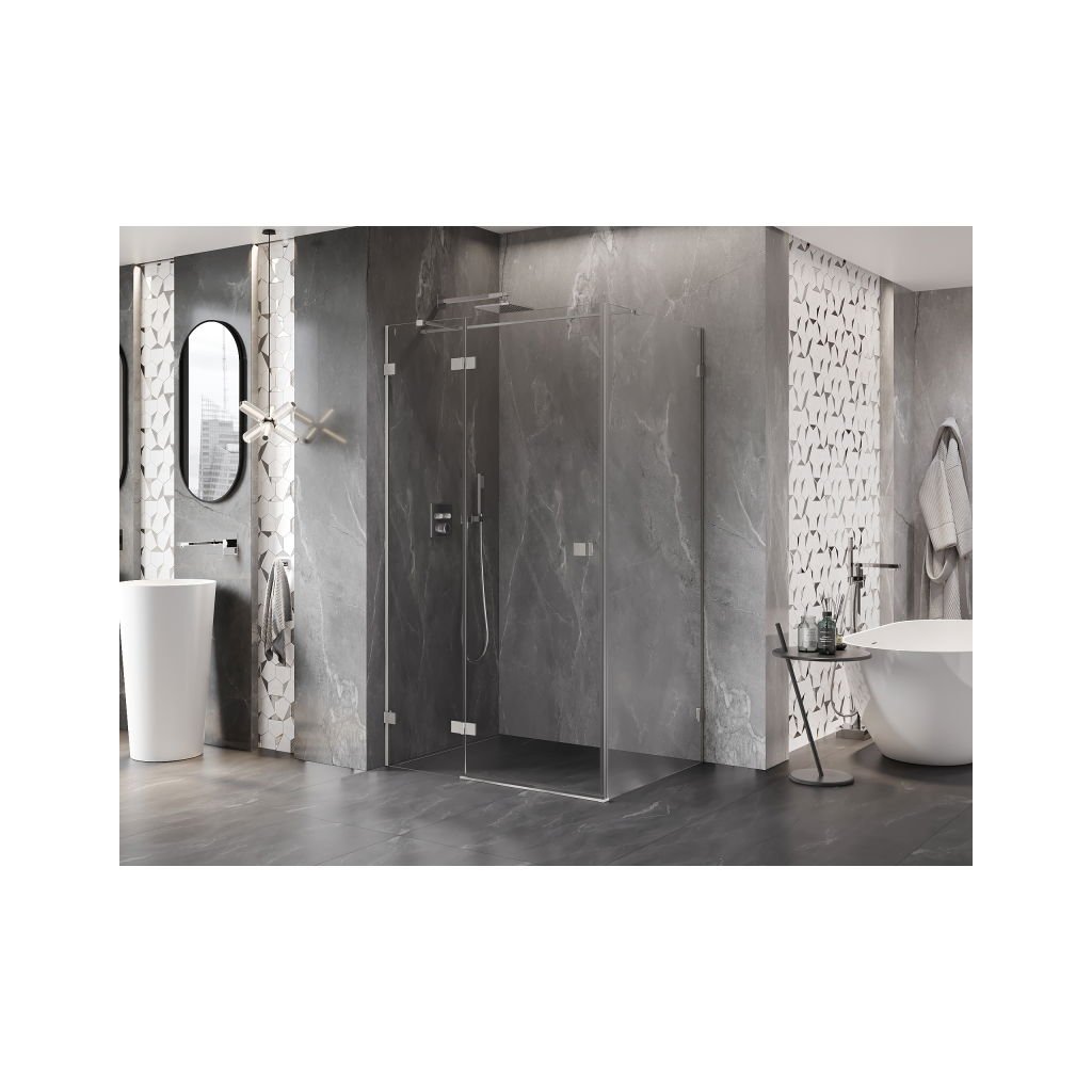 Mexen Lunar T, výklopný levý sprchový kout 140 x 90 cm, 8mm čiré sklo, ocelový profil, 834T-140-090-97-00-L