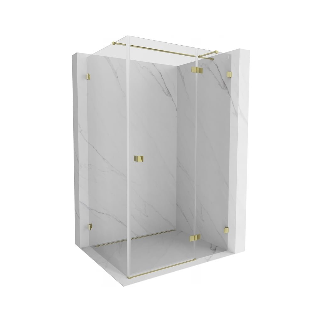Mexen Lunar T, výklopný pravý sprchový kout 140 x 100 cm, 8mm čiré sklo, zlatý profil, 834T-140-100-50-00-P