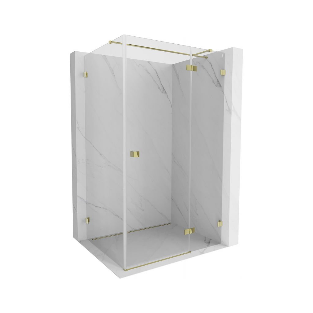 Mexen Lunar T, výklopný pravý sprchový kout 140 x 120 cm, 8mm čiré sklo, zlatý profil, 834T-140-120-50-00-P