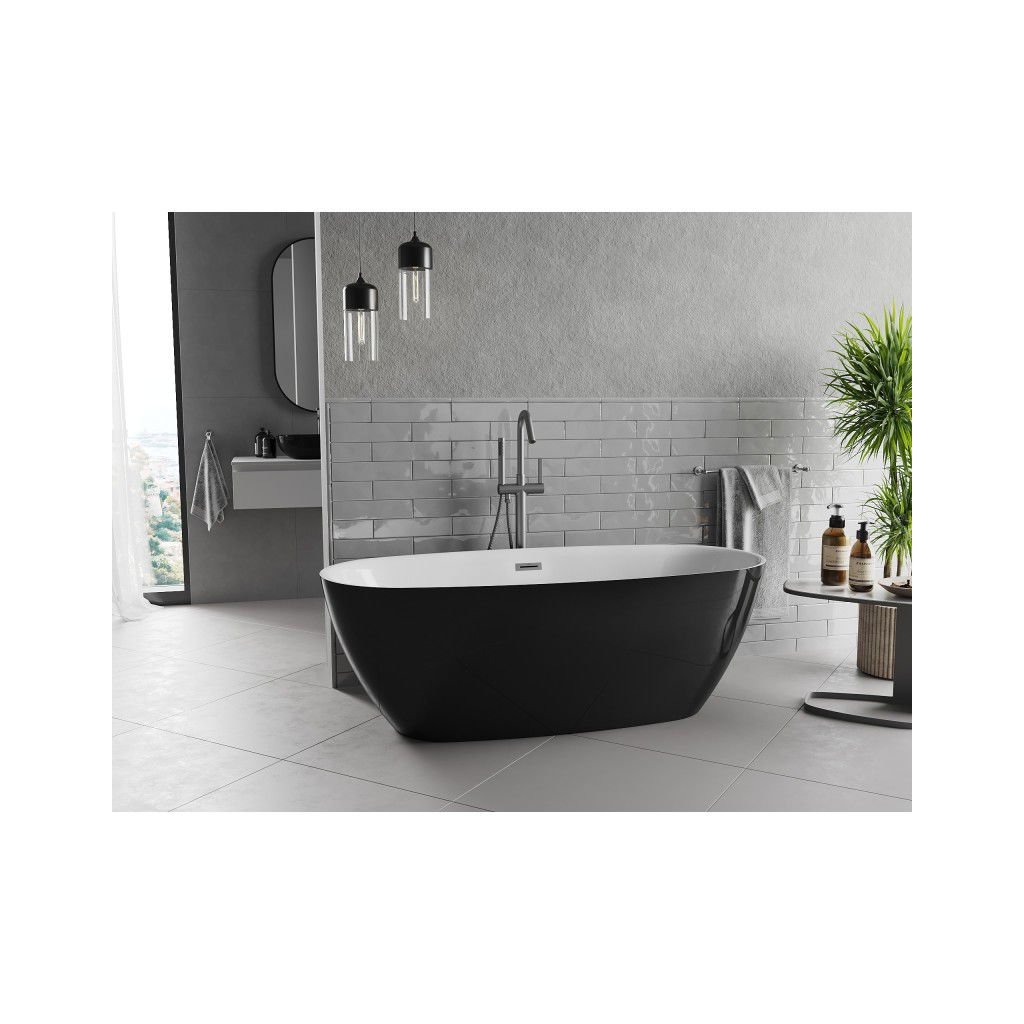 Mexen Luvo Slim, volně stojící vana 170 × 75 cm, bílá-černá, grafitový přepad, 52801707575-66