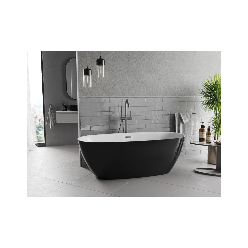 Mexen Luvo Slim, volně stojící vana 170 × 75 cm, bílá-černá, grafitový přepad, 52801707575-95