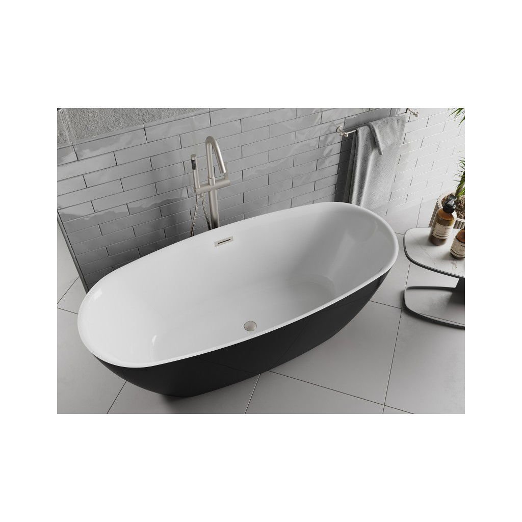 Mexen Luvo Slim, volně stojící vana 170 × 75 cm, bílá-černá, ocelový přepad, 52801707575-97