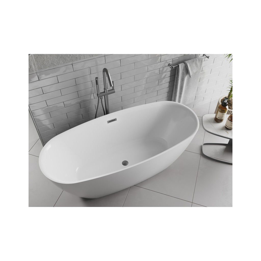 Mexen Luvo Slim, volně stojící vana 170 × 75 cm, bílá lesklá, grafitový přepad, 52801707500-66