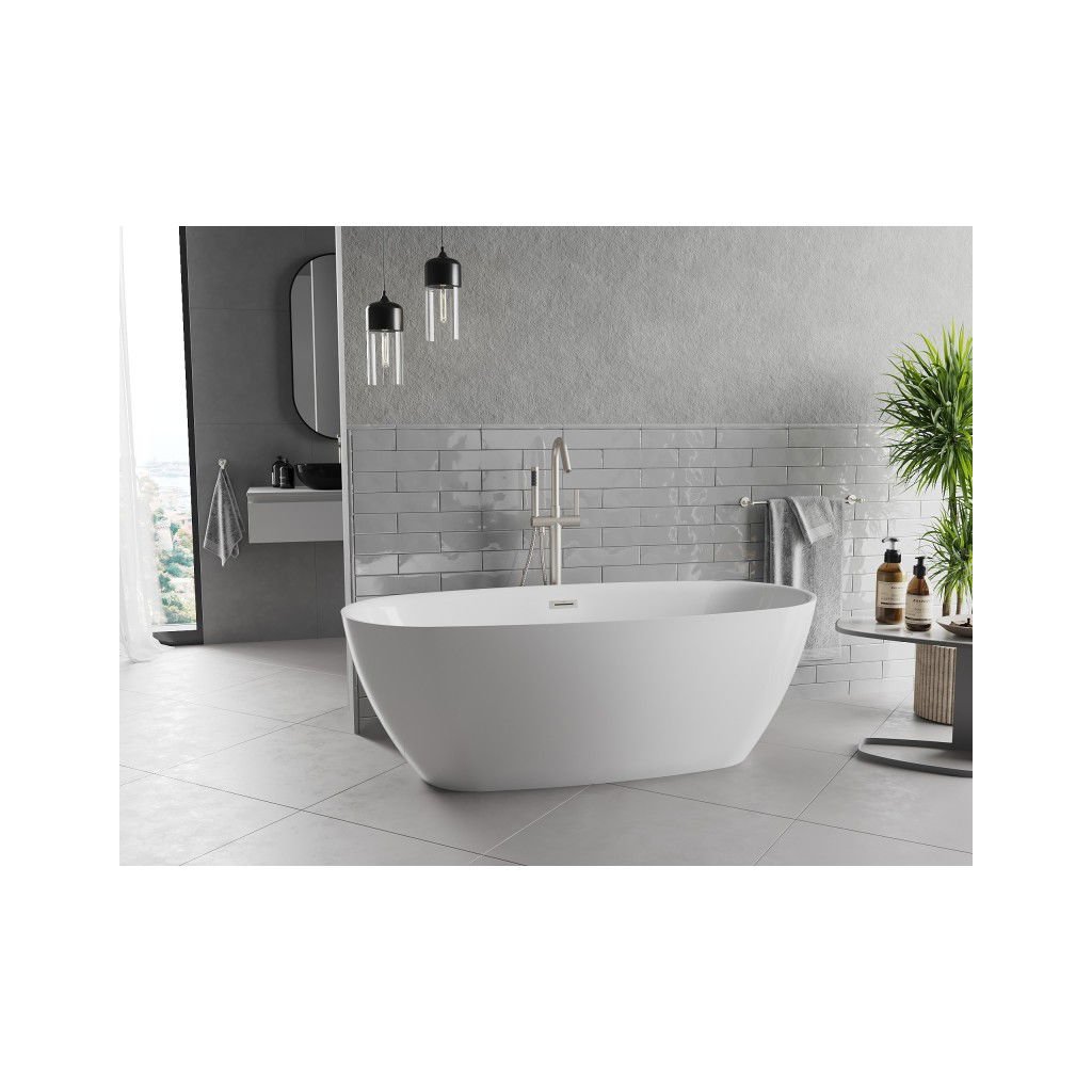 Mexen Luvo Slim, volně stojící vana 170 × 75 cm, bílá lesklá, ocelový přepad, 52801707500-97