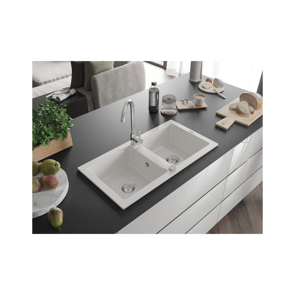 Mexen Mario - dřez granitový 82,0x43,6cm, 2-komorový, bílá, 6504822000-20