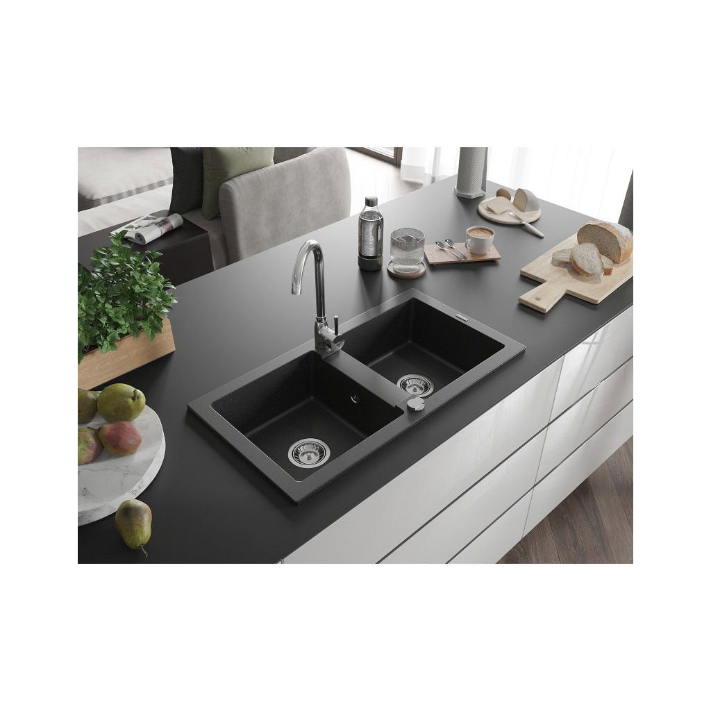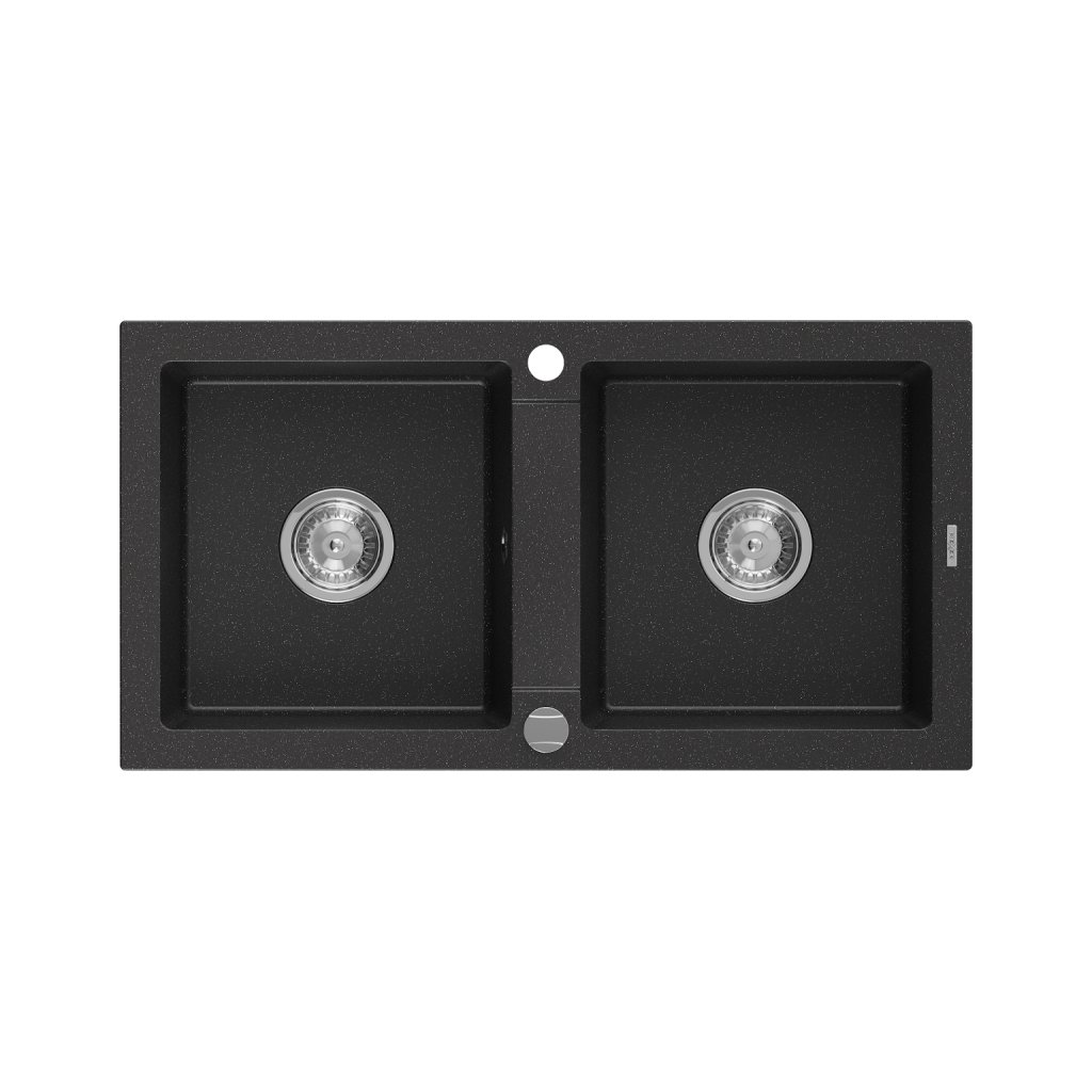 Mexen Mario - dřez granitový 82,0x43,6cm, 2-komorový, černá-stříbrná, 6504822000-73