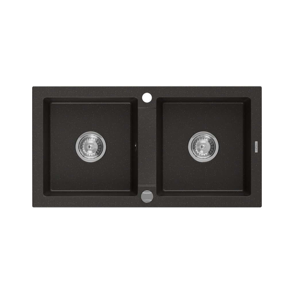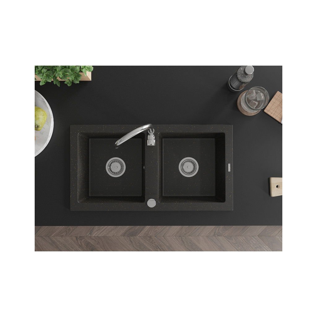 Mexen Mario - dřez granitový 82,0x43,6cm, 2-komorový, černá-zlatá, 6504822000-75