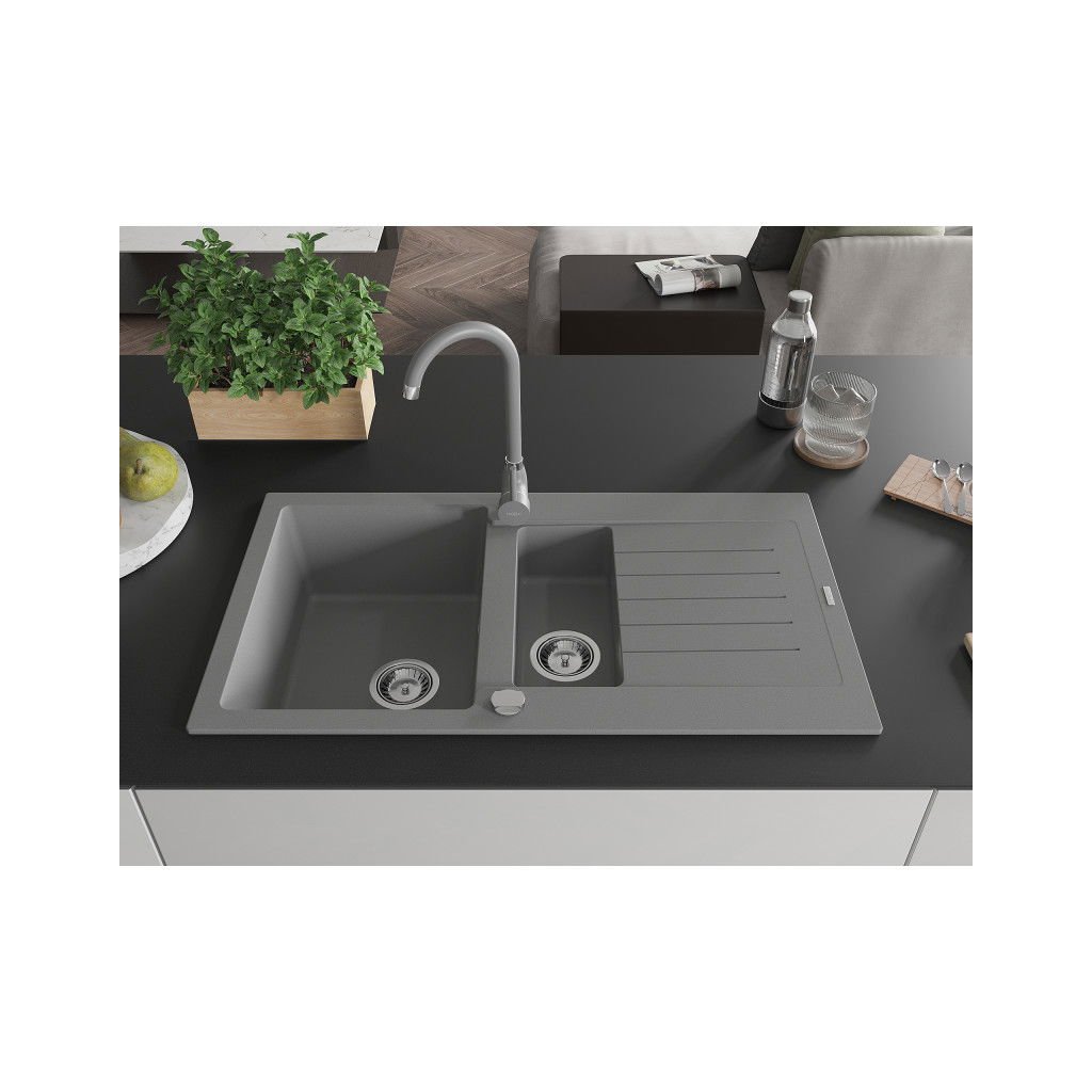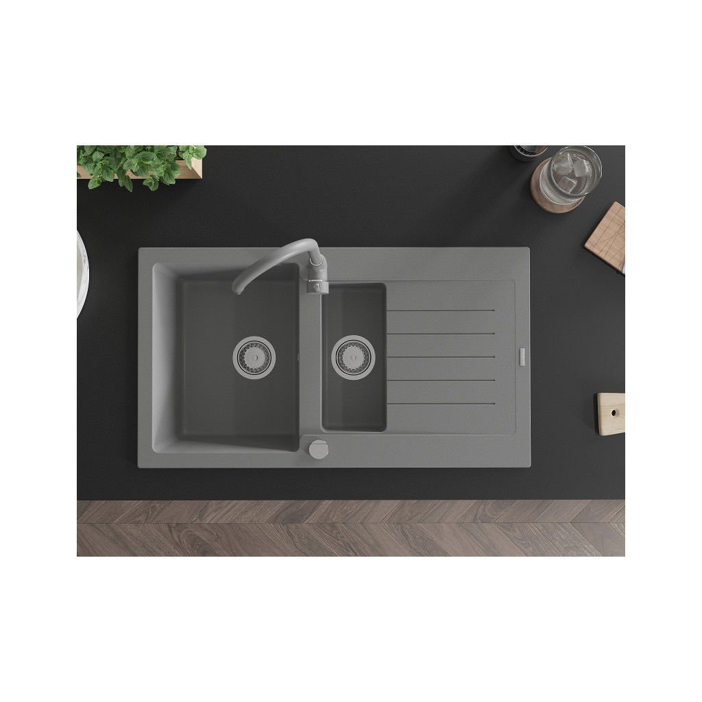 Mexen Matias granitový dřez 1,5 komorový s odkapávačem a kuchyňskou baterií Telma, šedá, 6502-71-670200-71