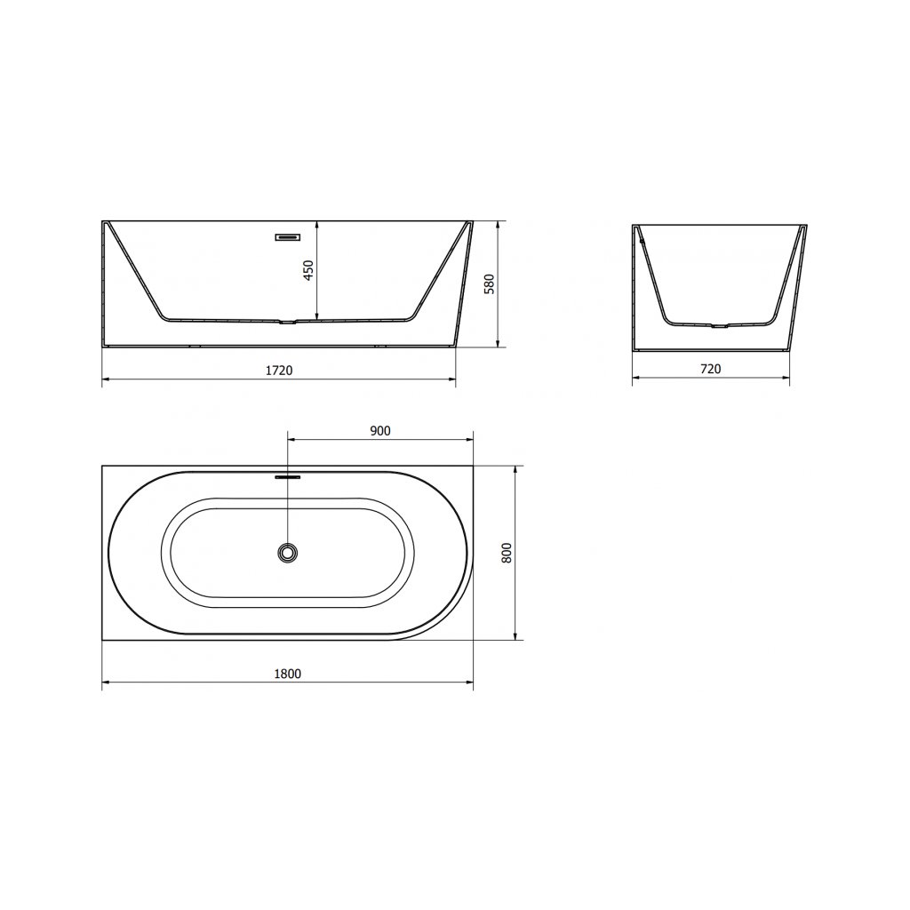 Mexen Mia, volně stojící rohová vana, lavá, 180 x 80 cm, bílá, černý matný přepad, 52691808000L-70
