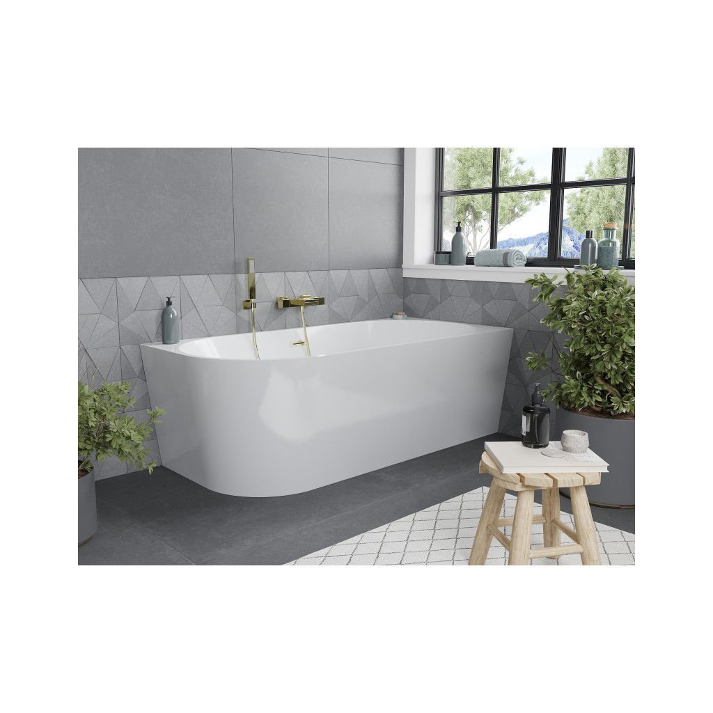 Mexen Mia, volně stojící rohová vana, pravá, 160 x 75 cm, bílá, zlatý matný přepad, 52691607500P-55