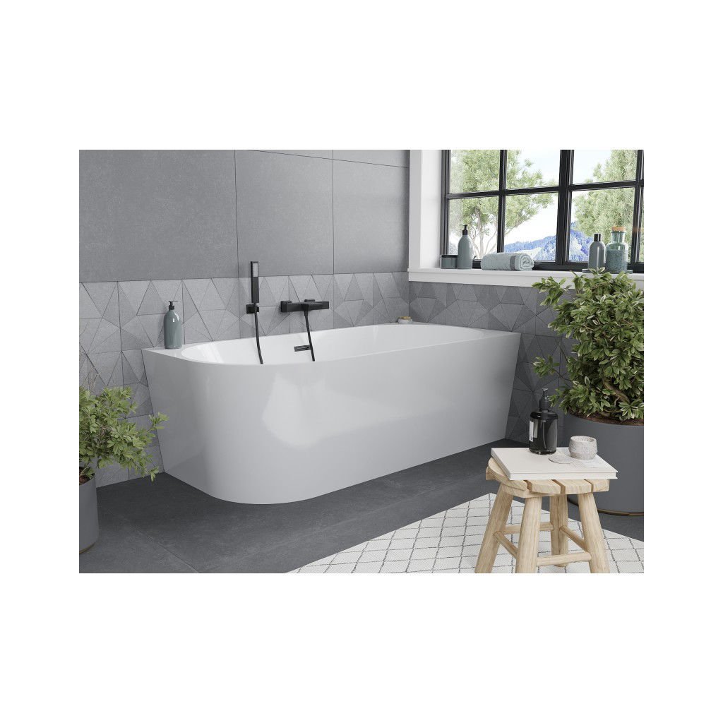 Mexen Mia, volně stojící rohová vana, pravá, 180 x 80 cm, bílá, černý matný přepad, 52691808000P-70