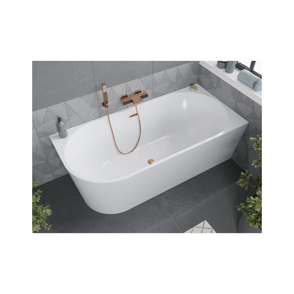 Mexen Mia, volně stojící rohová vana, pravá, 180 x 80 cm, bílá, měděný přepad, 52691808000P-65