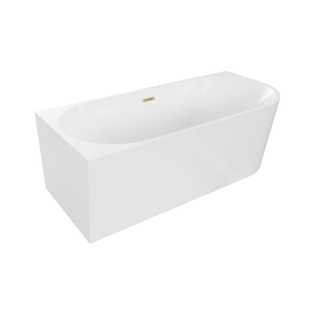 Mexen Mia, volně stojící rohová vana levá 140 x 75 cm, bílá, zlatý matný přepad, 52691407500L-55
