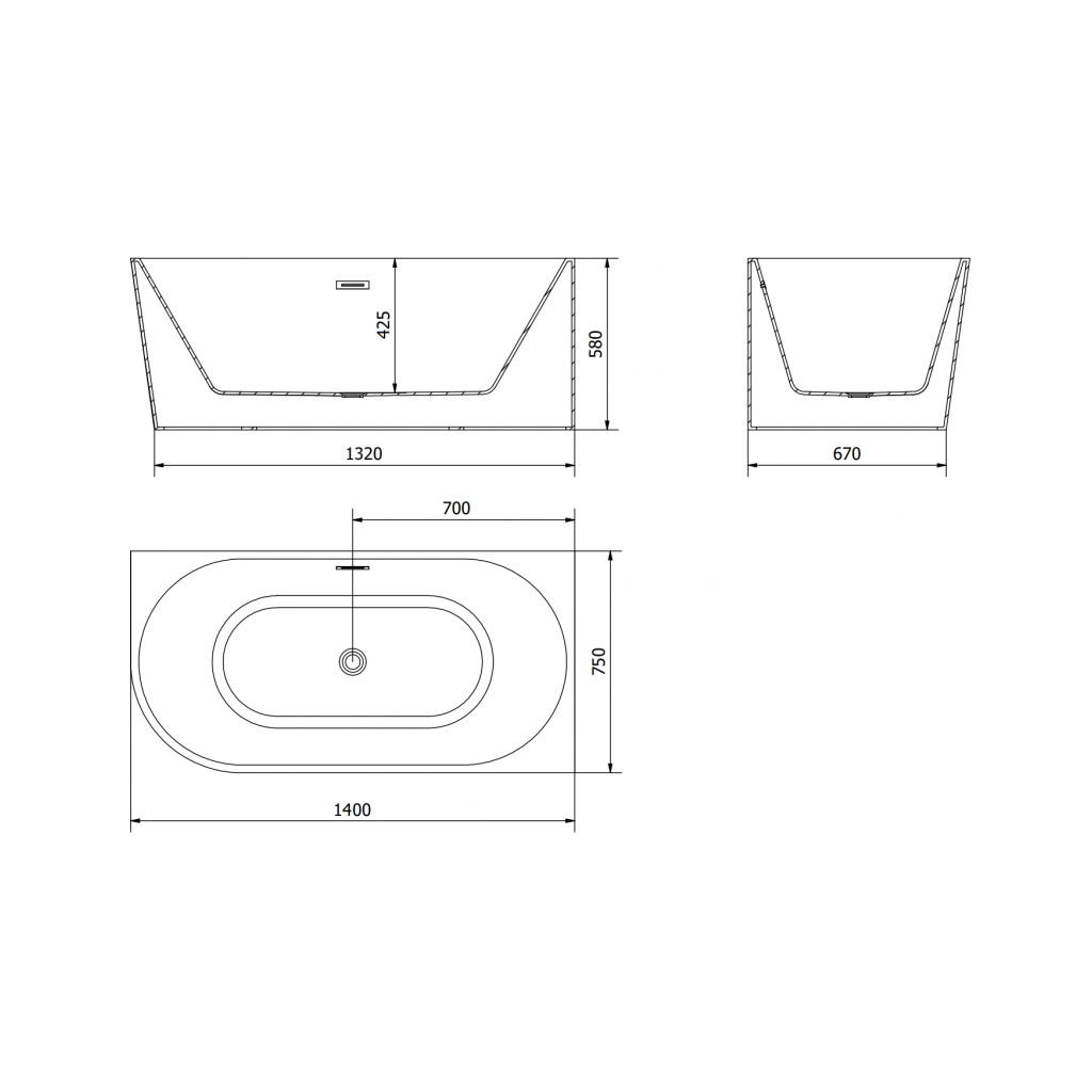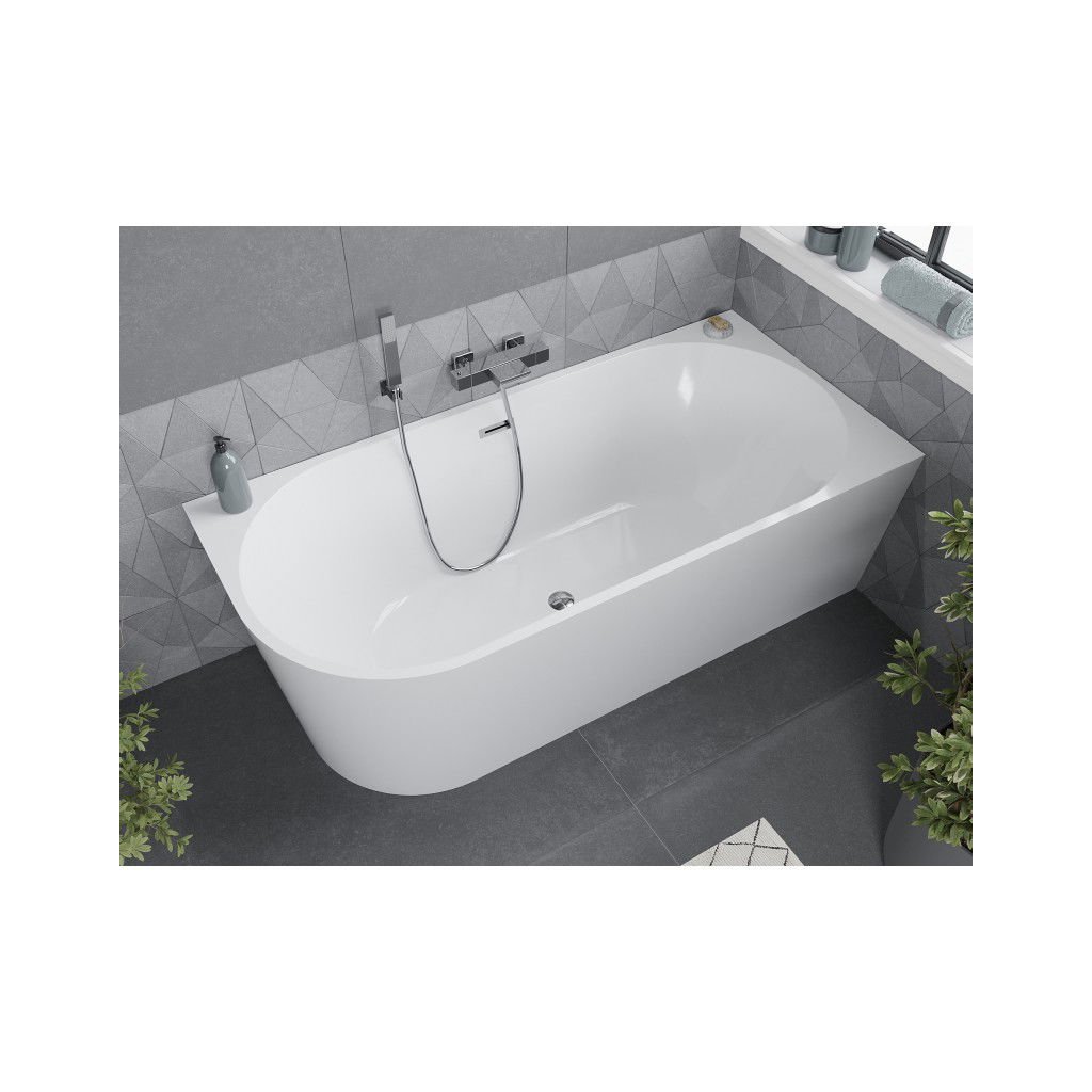 Mexen Mia, volně stojící rohová vana pravá 140 x 75 cm, bílá, chromový přepad, 52691407500P-01