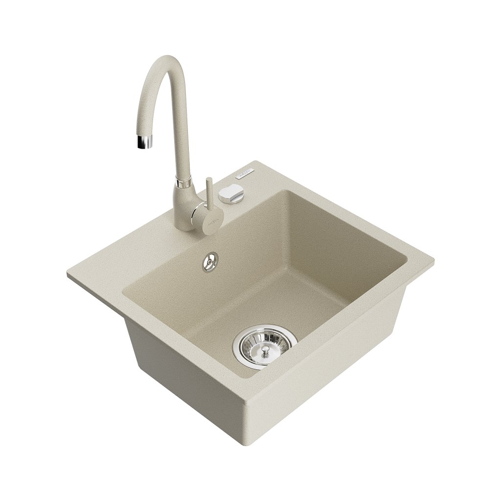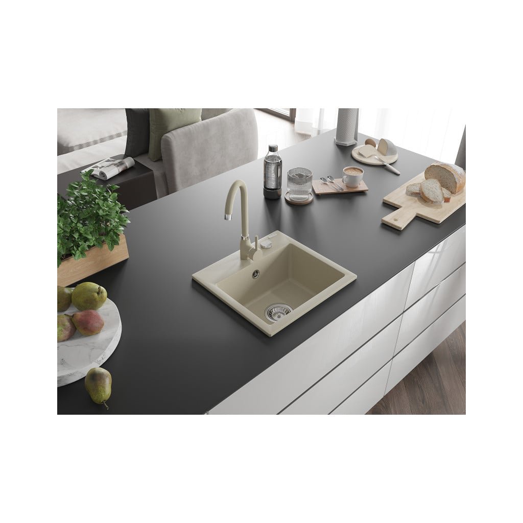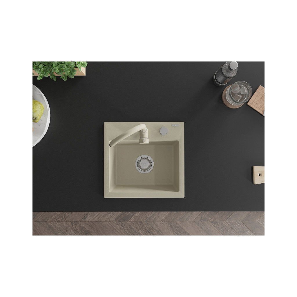 Mexen Milo, 1-komorový granitový dřez 43,5x41 cm a kuchyňská baterie Telma, béžová, 6505-69-670200-69