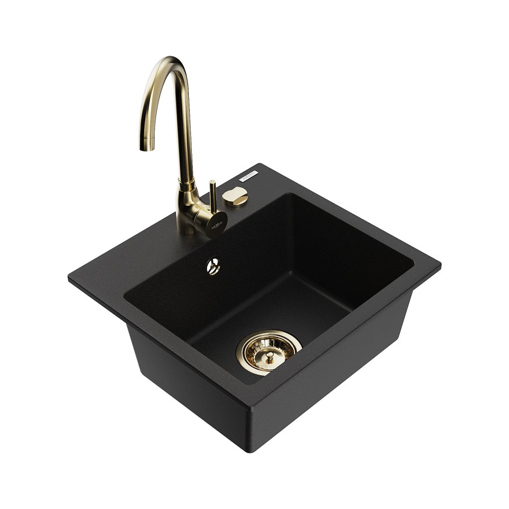 Mexen Milo, 1-komorový granitový dřez 43,5x41 cm a kuchyňská baterie Telma, černá, 6505-77-670200-50