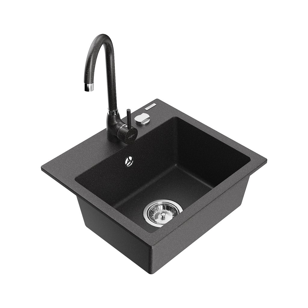 Mexen Milo, 1-komorový granitový dřez 43,5x41 cm a kuchyňská baterie Telma, černá-skvrnitá, 6505-76-670200-76