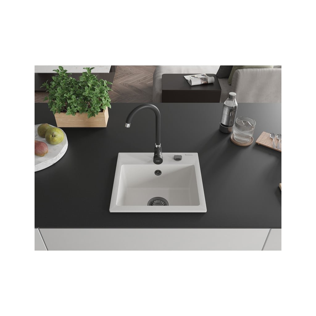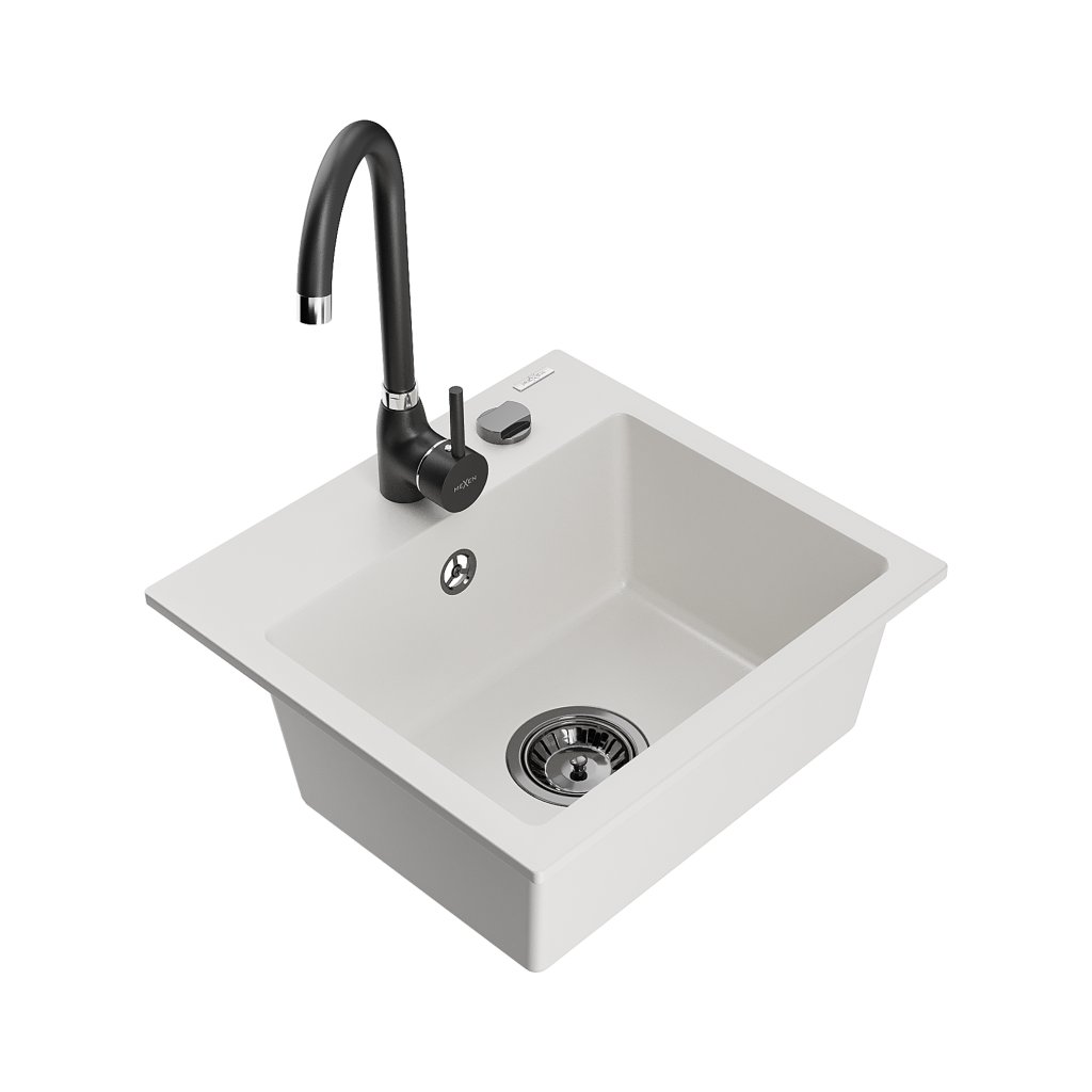 Mexen Milo, 1-komorový granitový dřez 435x410x171 mm a černá baterie Telma, bílá, 6505-20-670200-70