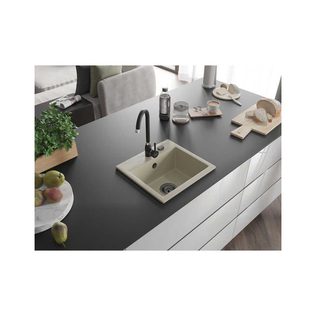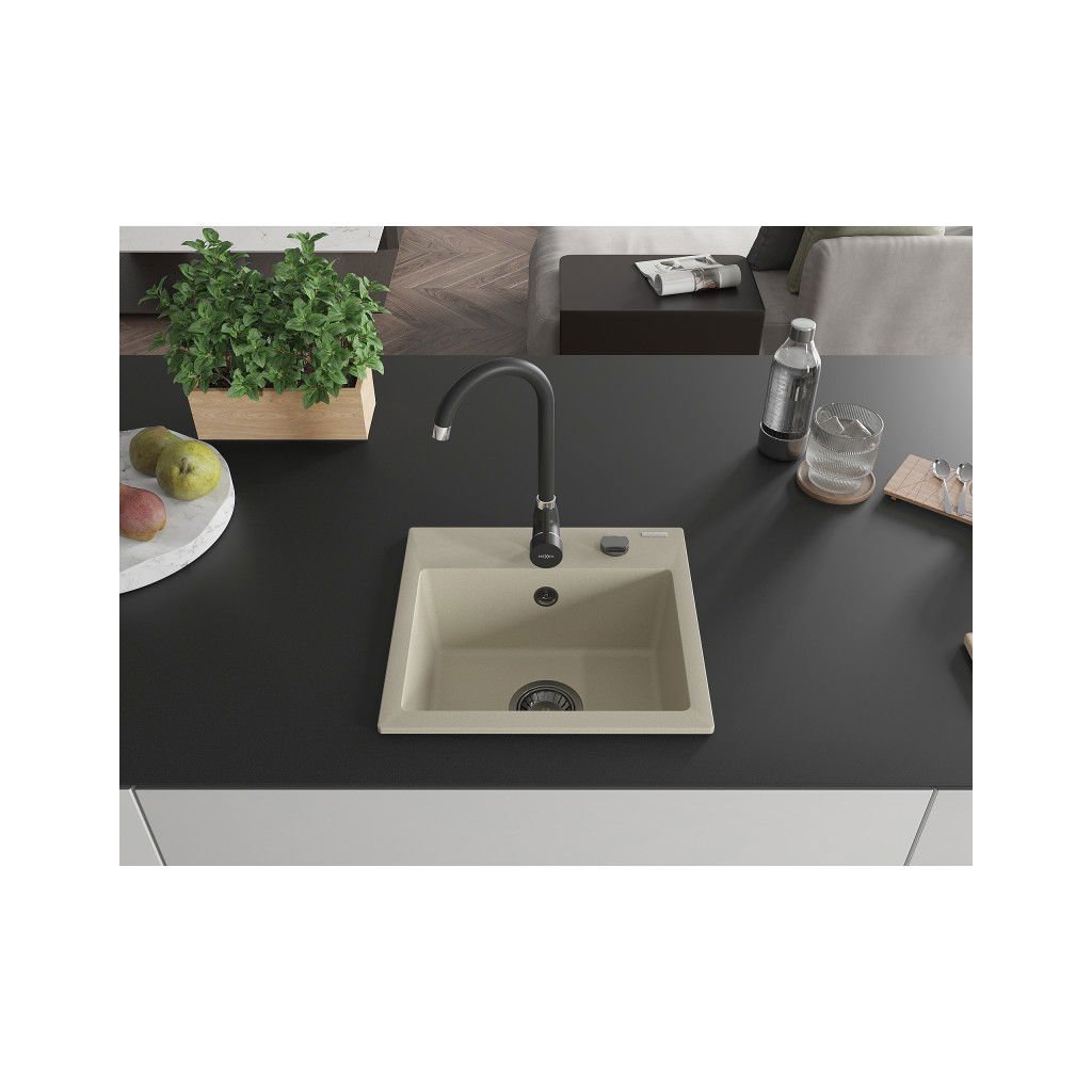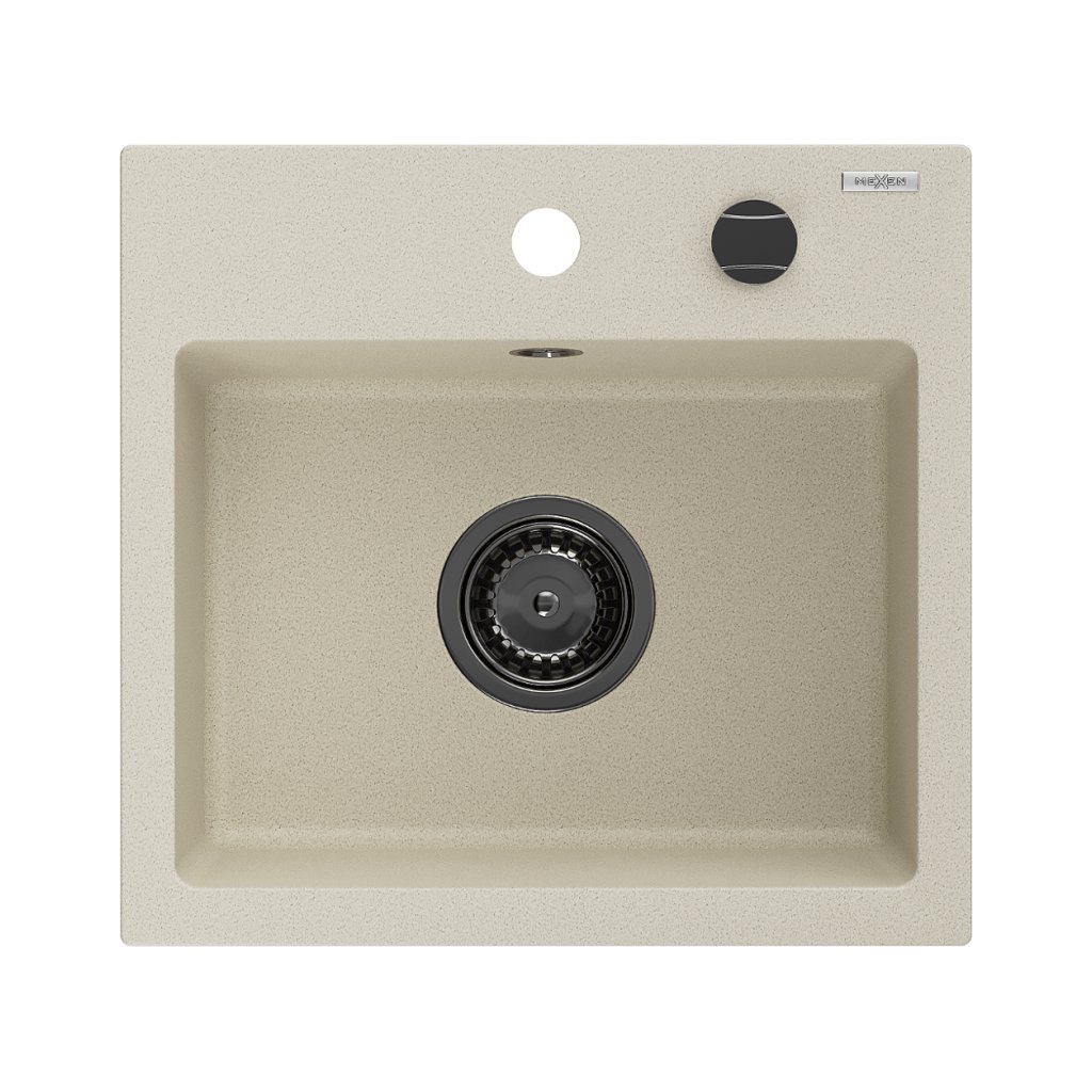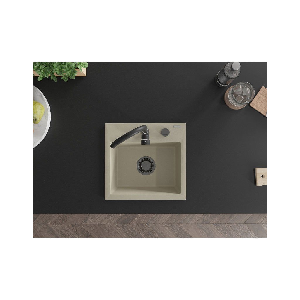 Mexen Milo, granitový dřez 435x410x171 mm, 1-komorový, béžová s černým sifonem, 6505441000-69-B