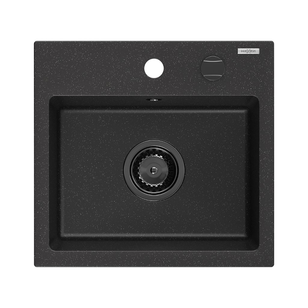 Mexen Milo, granitový dřez 435x410x171 mm, 1-komorový, černá-stříbrná metalíza s černým sifonem, 6505441000-73-B