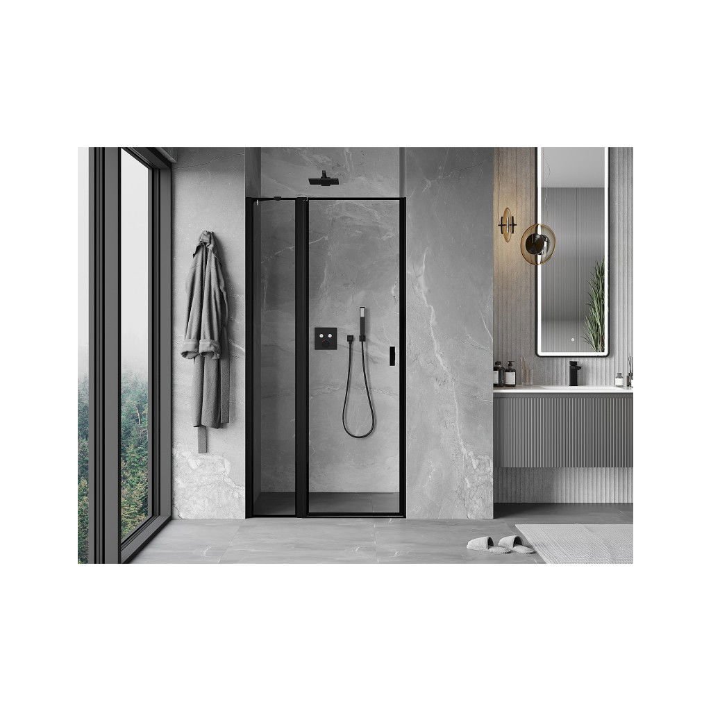 Mexen MIST, 1-křídlé sprchové dveře (1d+1s) 75x200 cm, 6mm čiré sklo s černým rámem, levá varianta, 8A4-075-000-70-70-L