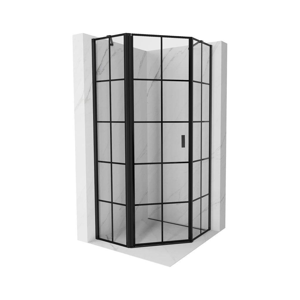 Mexen Mist, pětiúhelníkový sprchový kout, levý 80 x 80 cm, černá mřížka, černý - 8A8-080-080-70-77-L