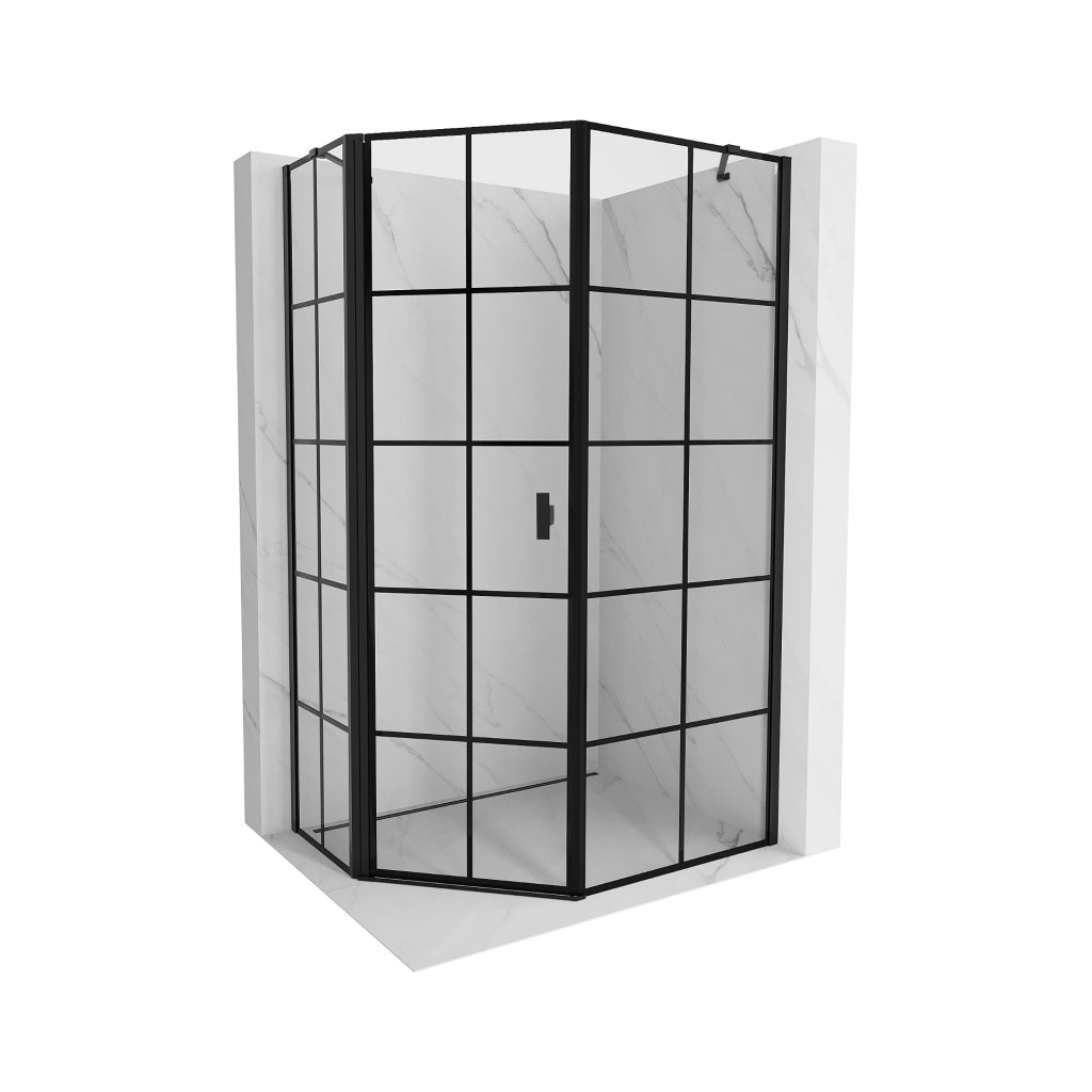 Mexen Mist, pětiúhelníkový sprchový kout, levý 90 x 100 cm, černá mřížka, černý - 8A8-090-100-70-77-L