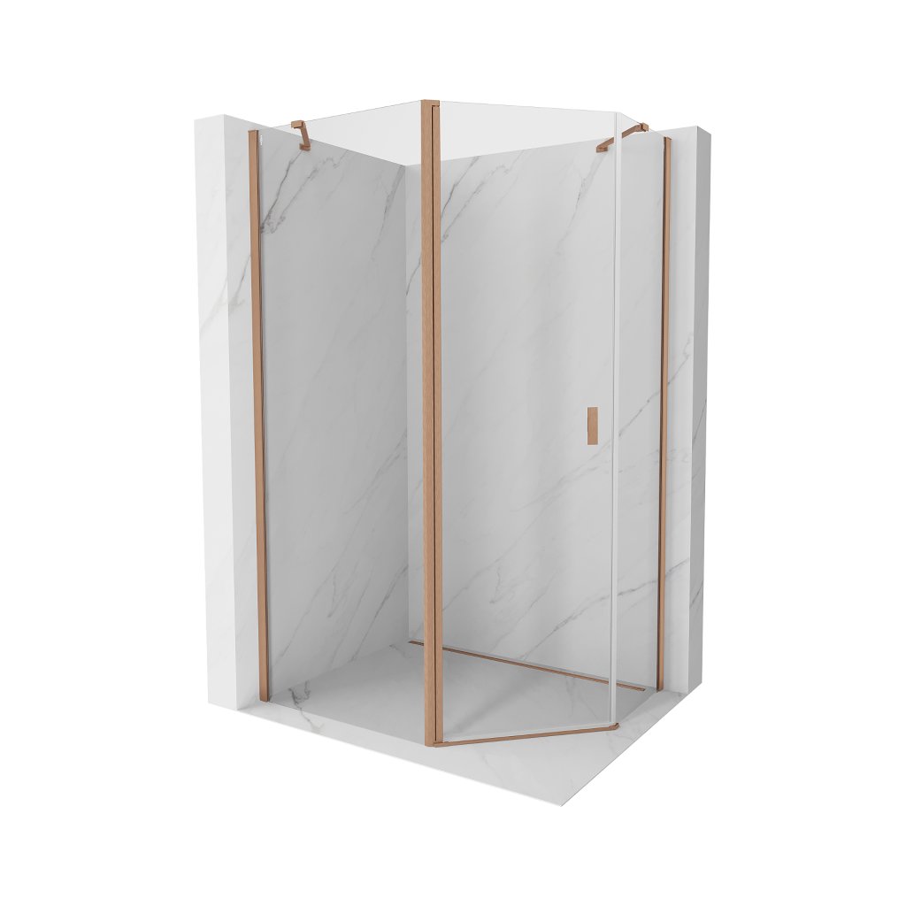 Mexen Mist, pětiúhelníkový sprchový kout výklopný 100 x 90 cm, čiré sklo, měděný matný profil, 8A8-100-090-65-00