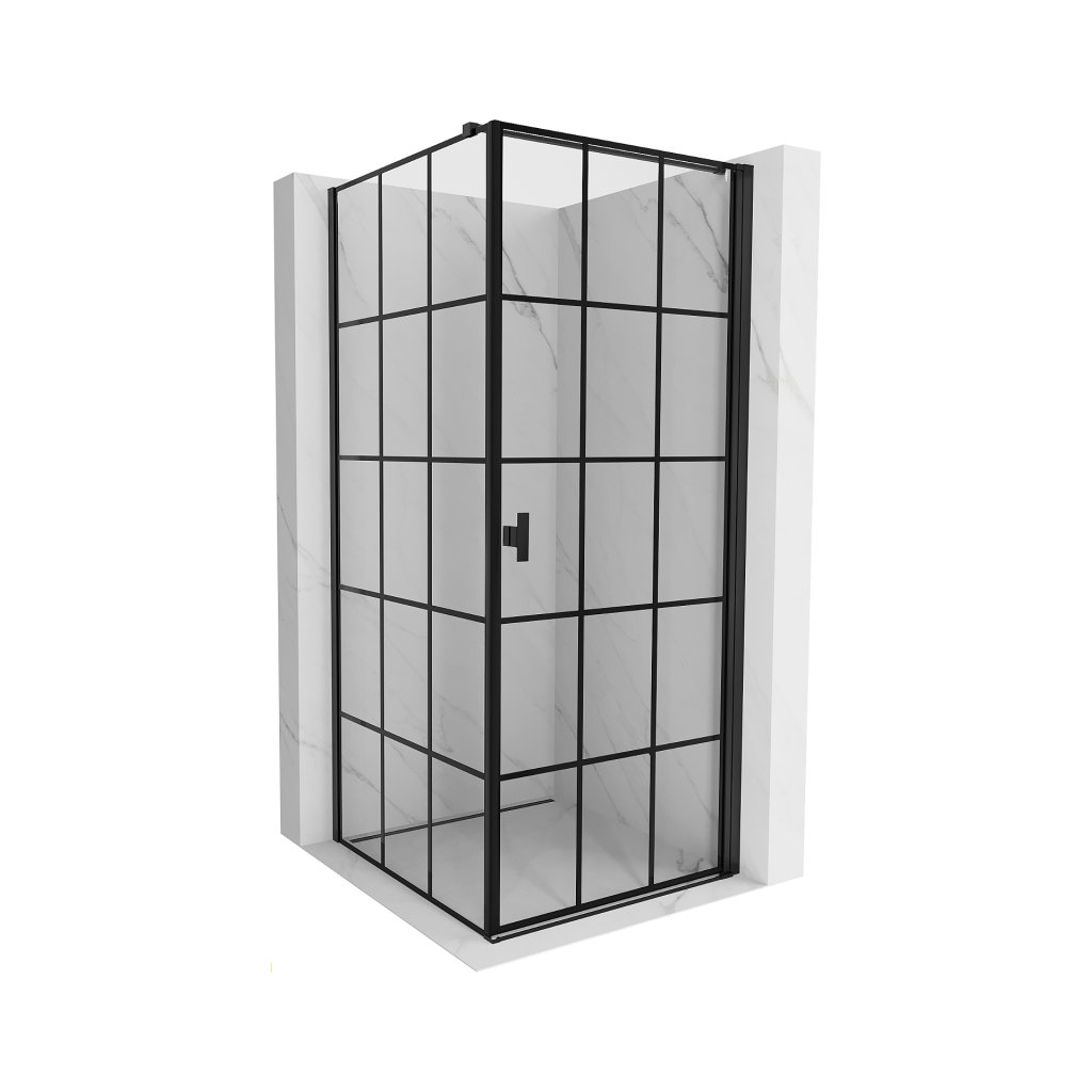 Mexen Mist-B, 1-křídlý výklopný sprchový kout, pravý, 80 x 80 cm, čiré sklo-černá mřížka, 8A2T-080-080-70-77-P
