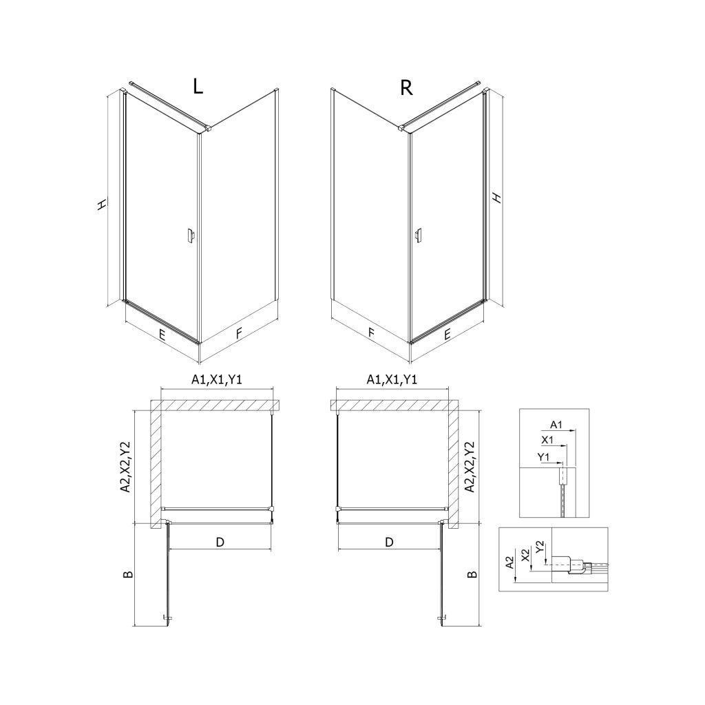 - Rozměr: 90x120 cm (levé dveře 90 cm, stěna 120 cm)