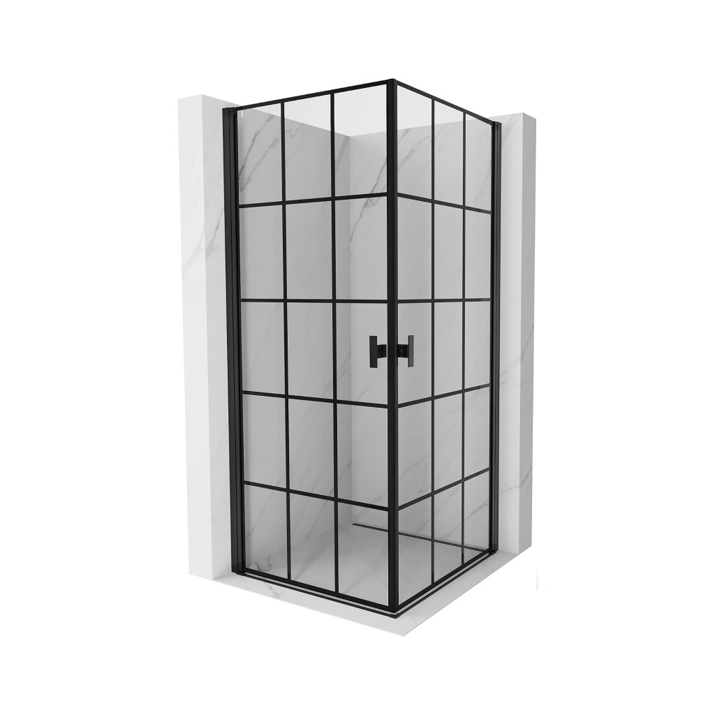 Mexen Mist-B Duo, 2-křídlý výklopný sprchový kout 70 x 70 cm, čiré sklo-černá mřížka, 8A2-070L-070P-70-77