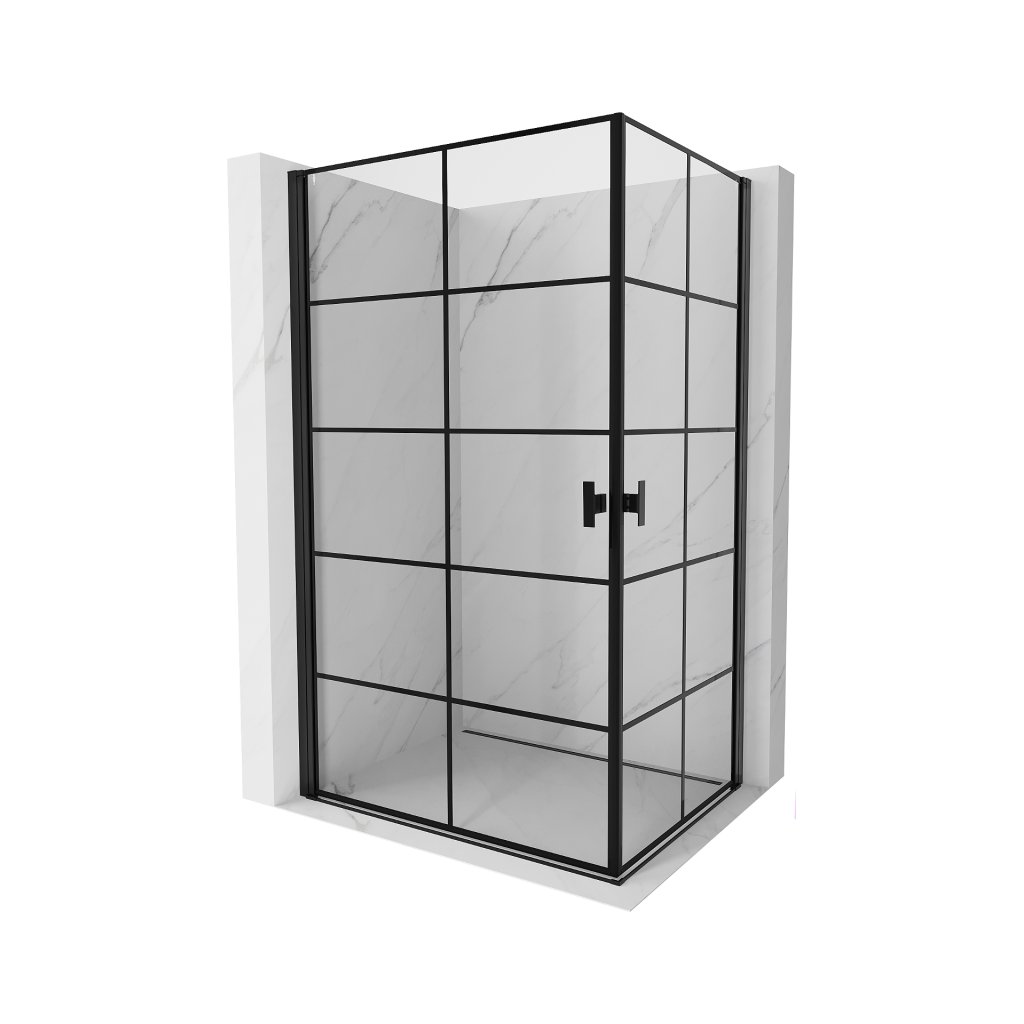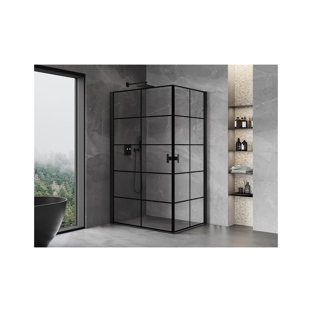 Mexen Mist-B Duo, 2-křídlý výklopný sprchový kout 70 x 90 cm, čiré sklo-černá mřížka, 8A2-070L-090P-70-77