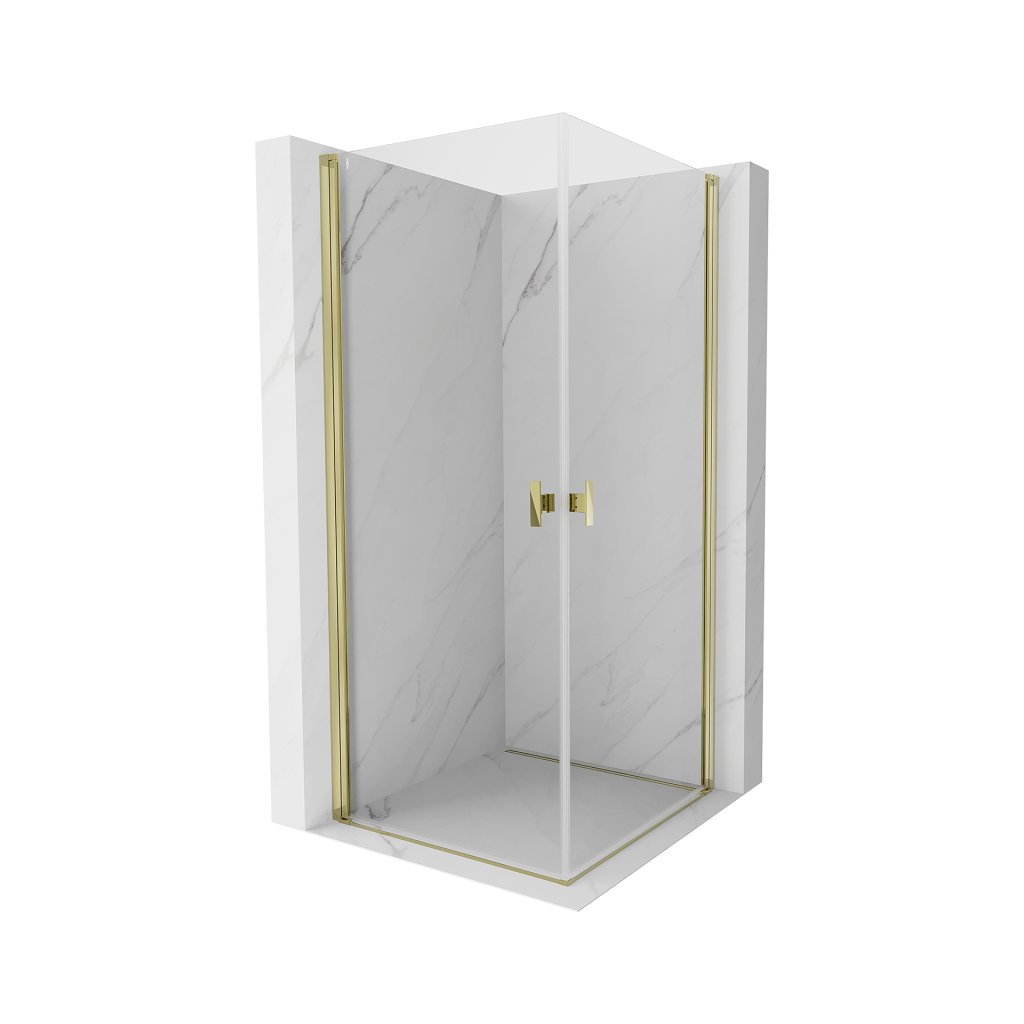 Mexen Mist-B Duo, 2-křídlý výklopný sprchový kout 75 x 75 cm, čiré sklo, zlatý lesklý profil, 8A2-075-075-50-00