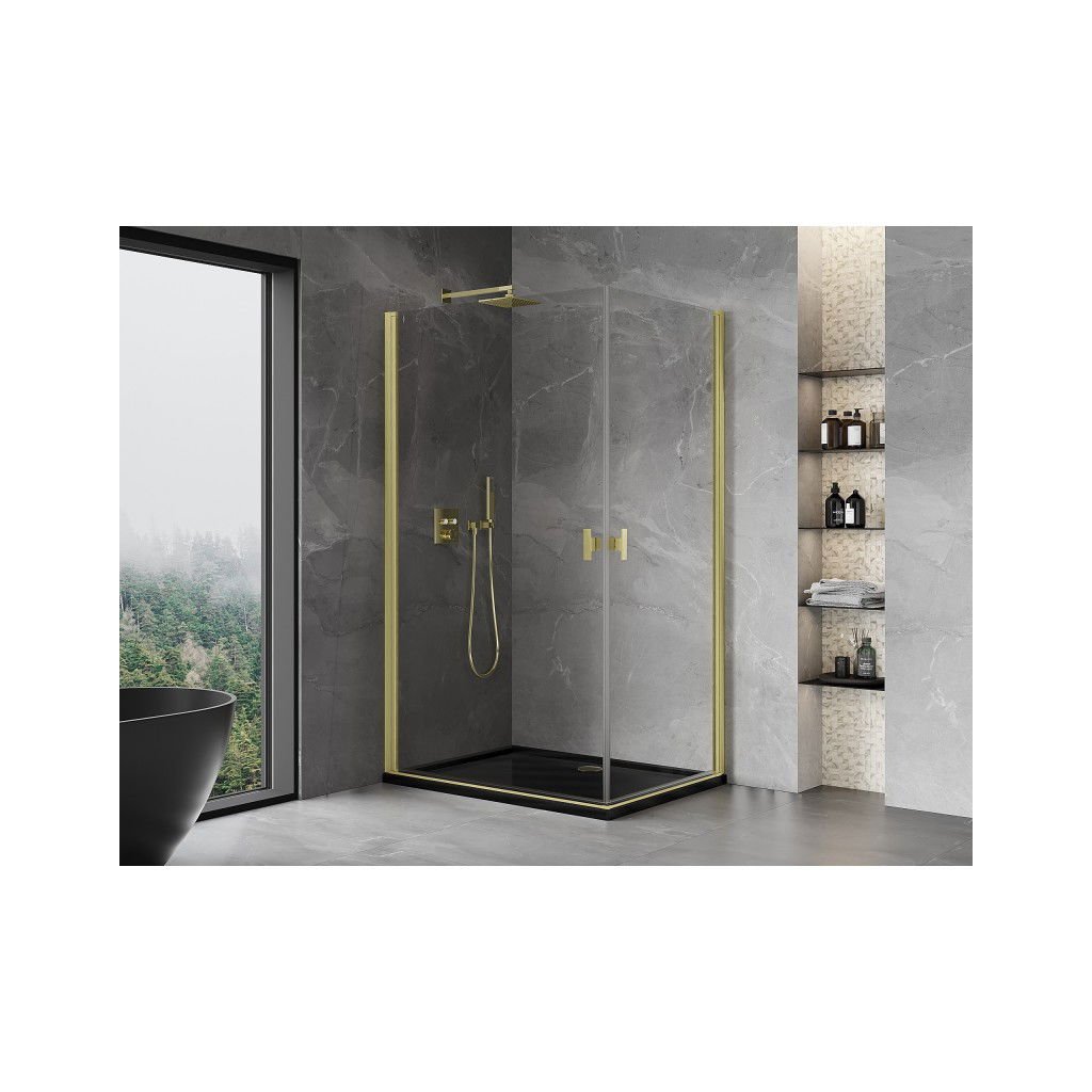 Mexen Mist-B Duo, 2-křídlý výklopný sprchový kout 80 x 75 cm, čiré sklo, zlatý matný profil, 8A2-080-075-55-00