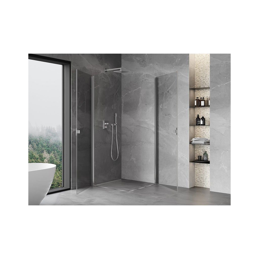 Mexen Mist-B Duo, 2-křídlý výklopný sprchový kout 85 x 85 cm, čiré sklo, chromový profil, 8A2-085-085-01-00