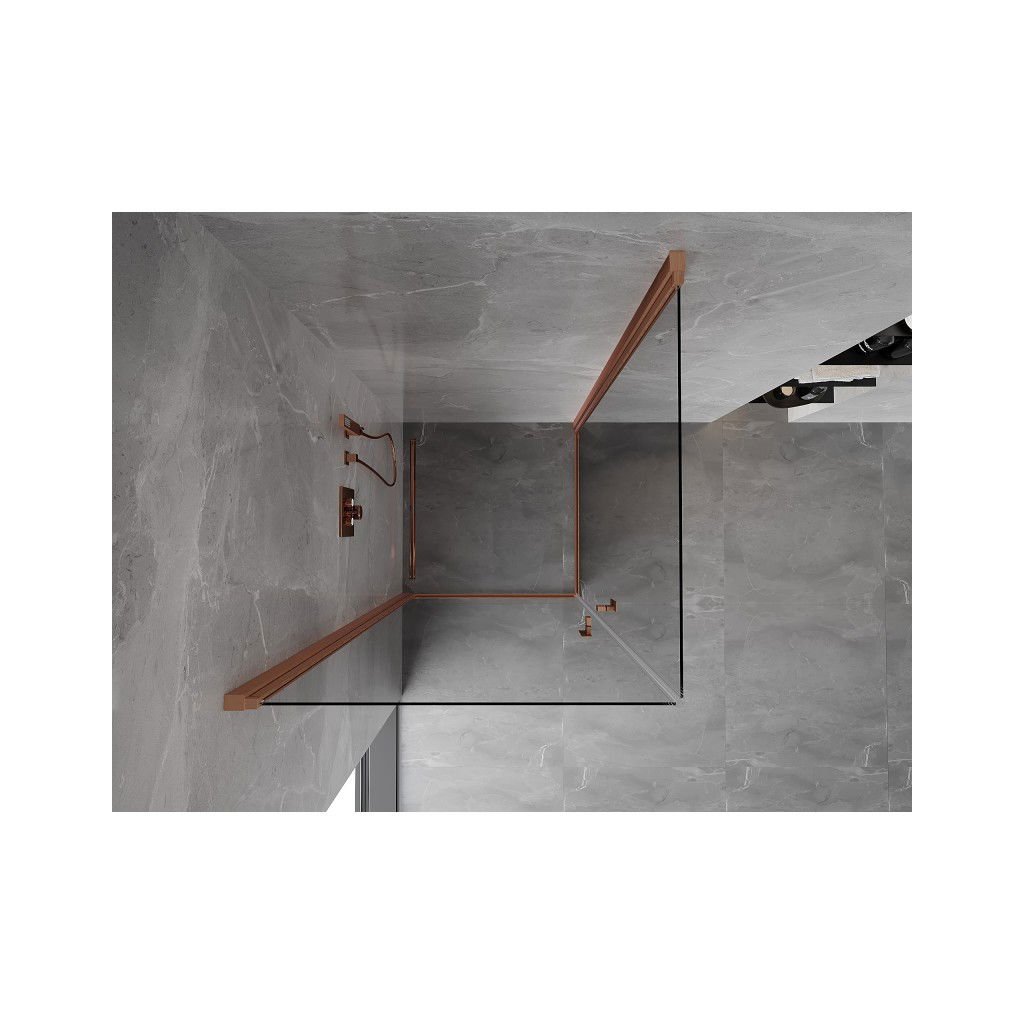 Mexen Mist-B Duo, 2-křídlý výklopný sprchový kout 85 x 85 cm, čiré sklo, měděný matný profil, 8A2-085-085-65-00