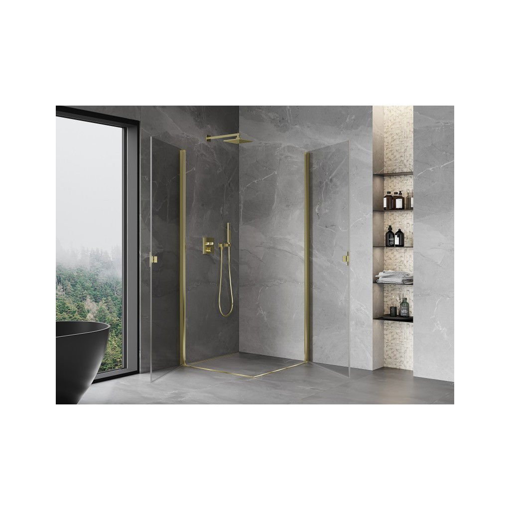 Mexen Mist-B Duo, 2-křídlý výklopný sprchový kout 85 x 85 cm, čiré sklo, zlatý lesklý profil, 8A2-085-085-50-00