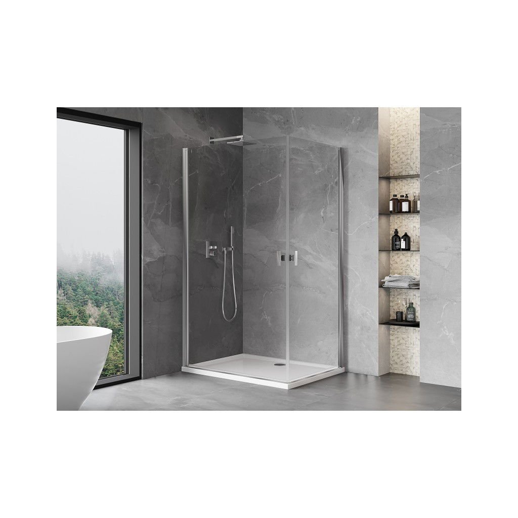 Mexen Mist-B Duo, 2-křídlý výklopný sprchový kout 90 x 70 cm, čiré sklo, chromový profil, 8A2-090-070-01-00
