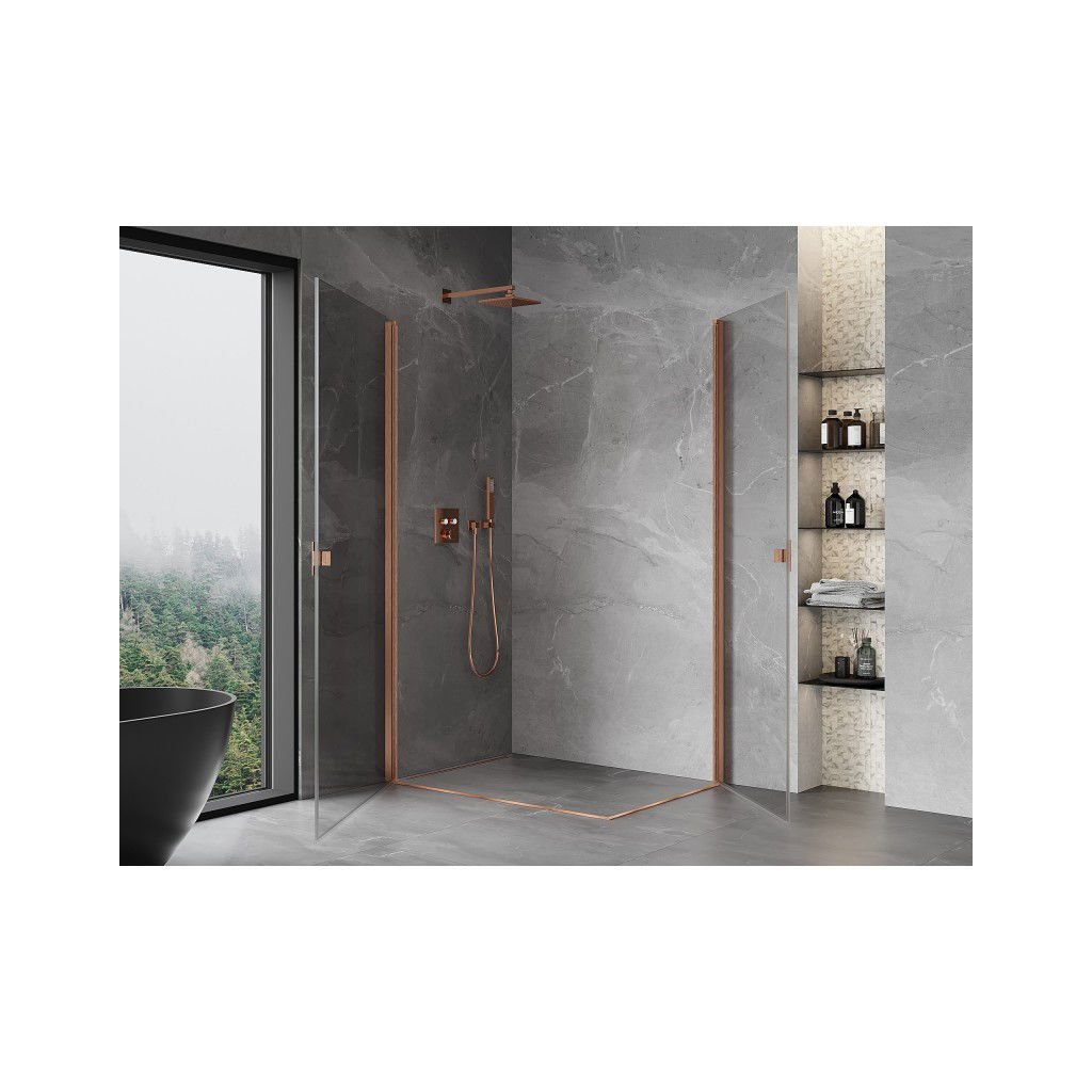 Mexen Mist-B Duo, 2-křídlý výklopný sprchový kout 90 x 85 cm, čiré sklo, měděný matný profil, 8A2-090-085-65-00