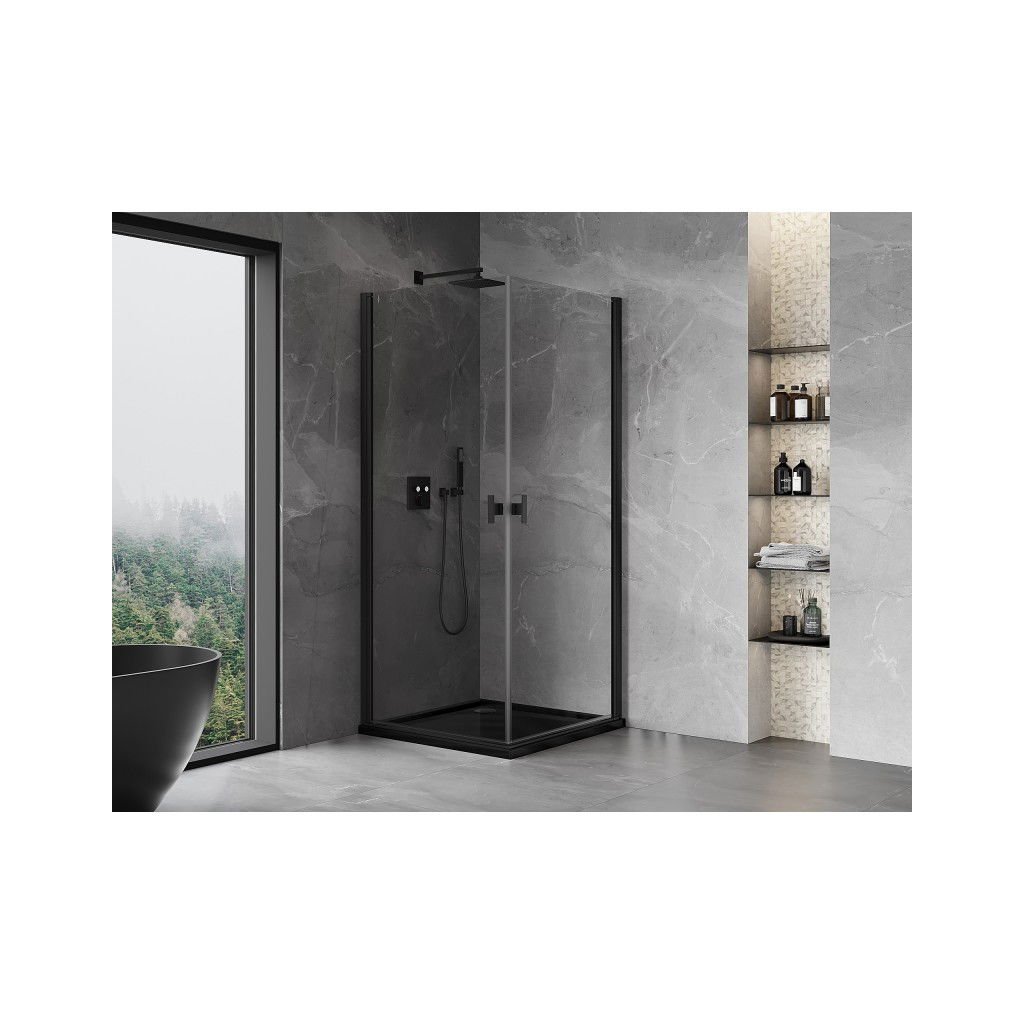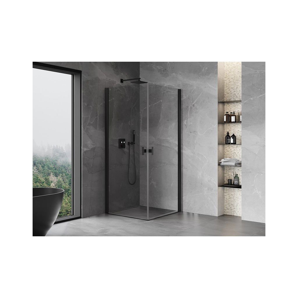 Mexen Mist-B Duo, 2-křídlý výklopný sprchový kout 95 x 95 cm, čiré sklo, černý profil, 8A2-095-095-70-00