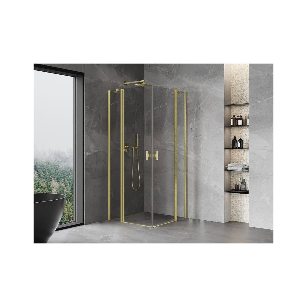 Mexen Mist Duo, 2-křídlý sprchový kout 100 x 100 cm, čiré sklo, zlatá matná, 8A4-100-100-55-00