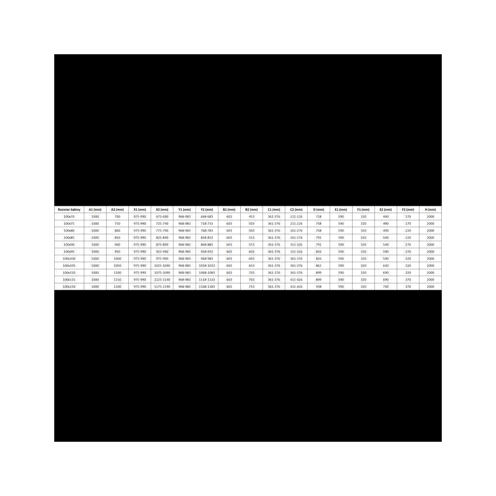 - Rozměr: 100x70 cm (levé dveře 100 cm, pravé dveře 70 cm)