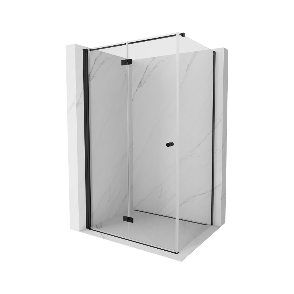 Mexen Mist-F T, 1-křídlý skládací sprchový kout levý 90 x 110 cm, čiré sklo, černý profil, 8A6T-090-110-70-00-L
