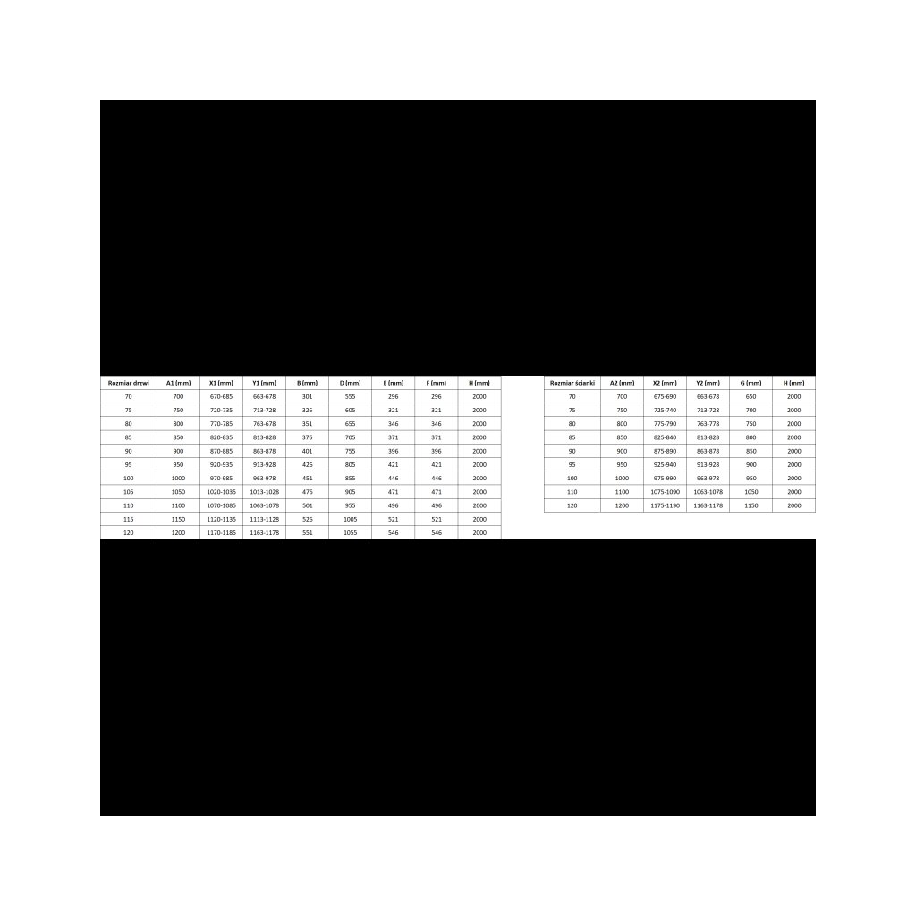 - Rozměr: 110x70 cm (pravé dveře 110 cm, stěna 70 cm)