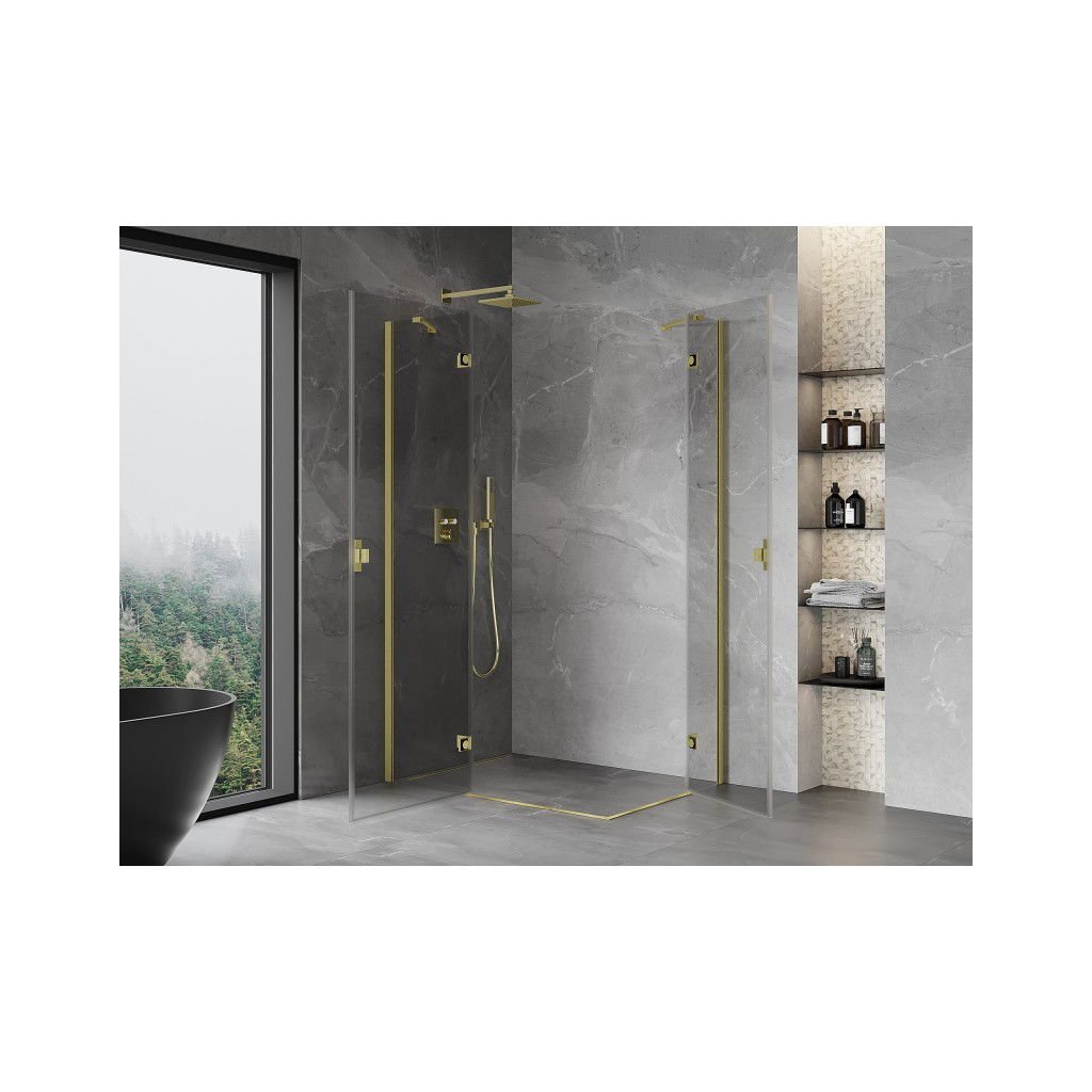 Mexen Mist-H Duo, 2-křídlý výklopný sprchový kout 105 x 100 cm, čiré sklo, zlatý matný profil, 8A5-105L-100P-55-00