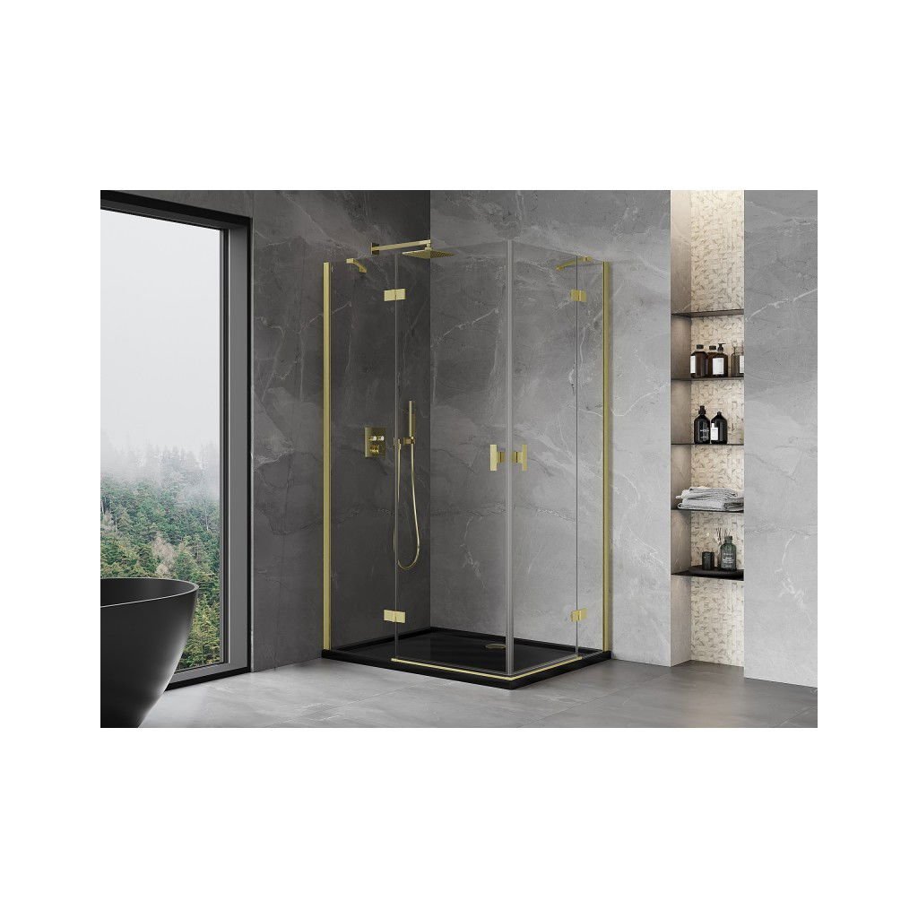 Mexen Mist-H Duo, 2-křídlý výklopný sprchový kout 110 x 70 cm, čiré sklo, zlatý matný profil, 8A5-110L-070P-55-00
